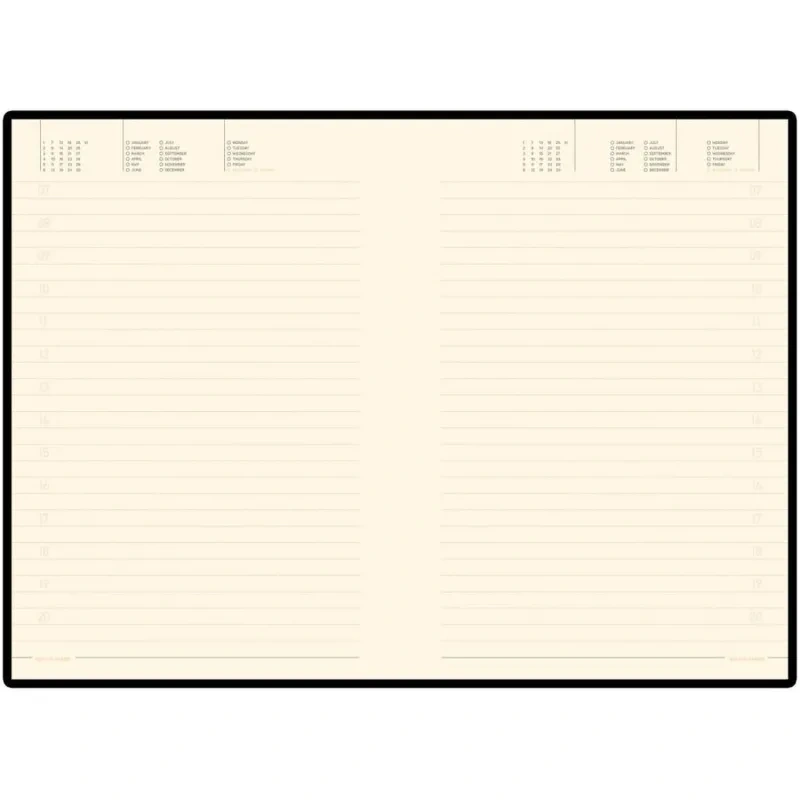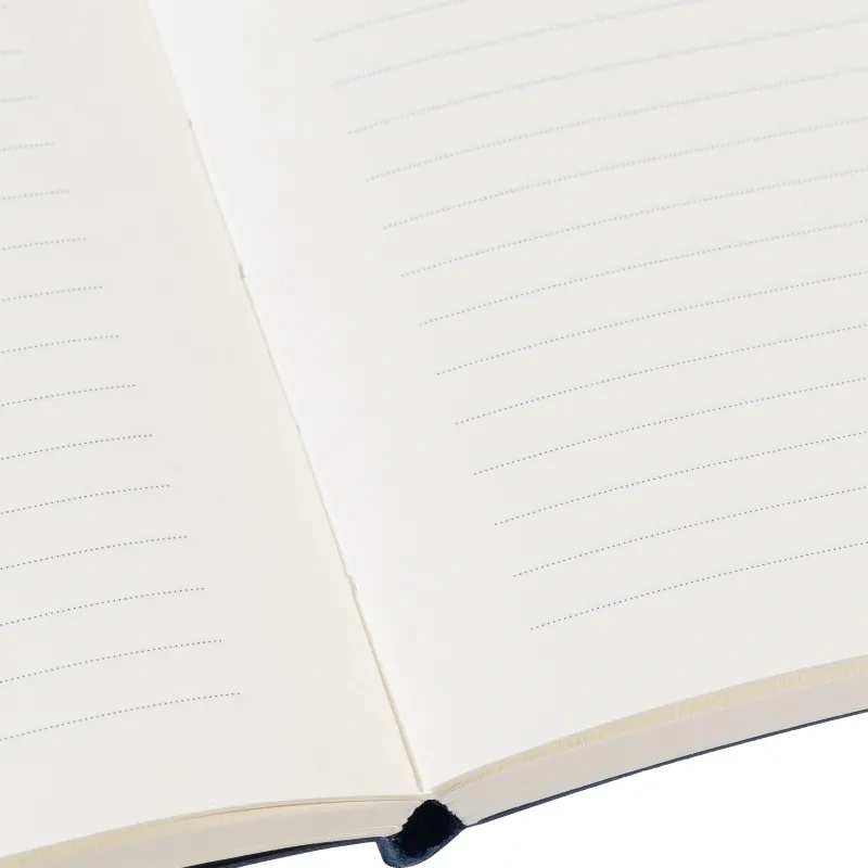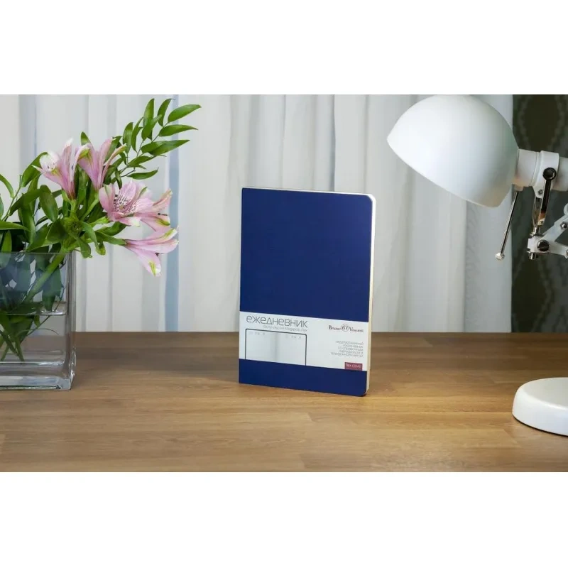 Ежедневник формата A5 с мягкой обложкой темно-синего цвета, выполненной из искусственной кожи, станет отличным выбором для офисной работы. Внутренний блок состоит из 136 листов (272 страницы) бежевой офсетной бумаги плотностью 90 г/кв.м. с линейкой. Печать выполнена в одну краску.
