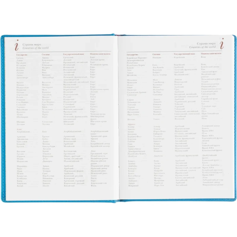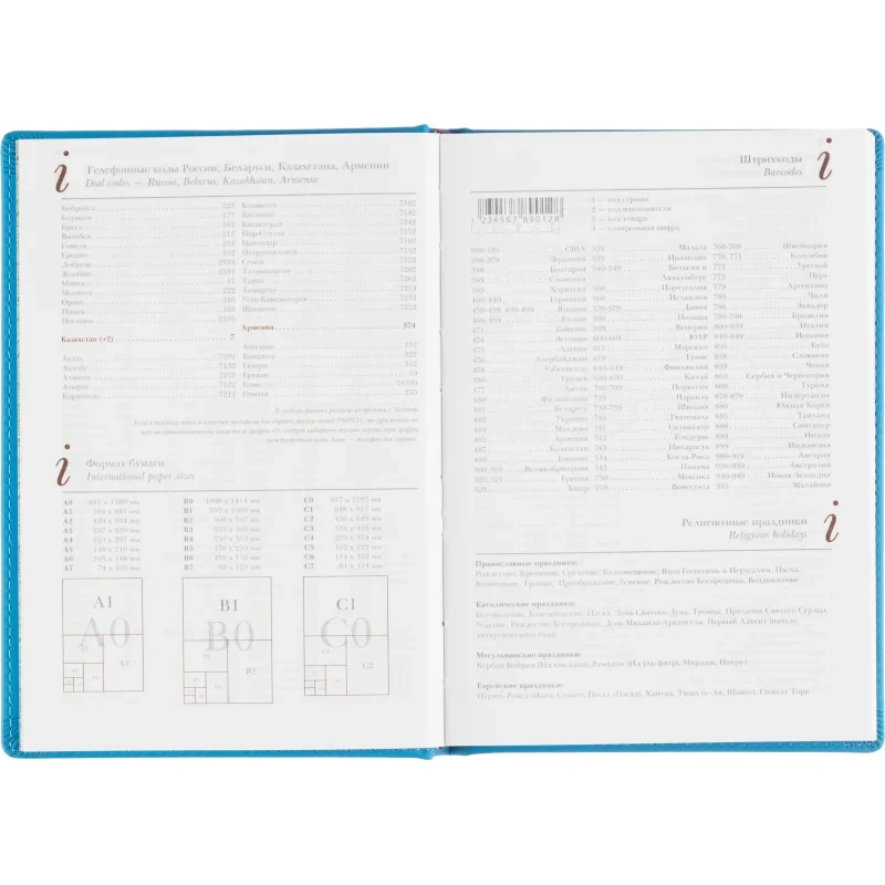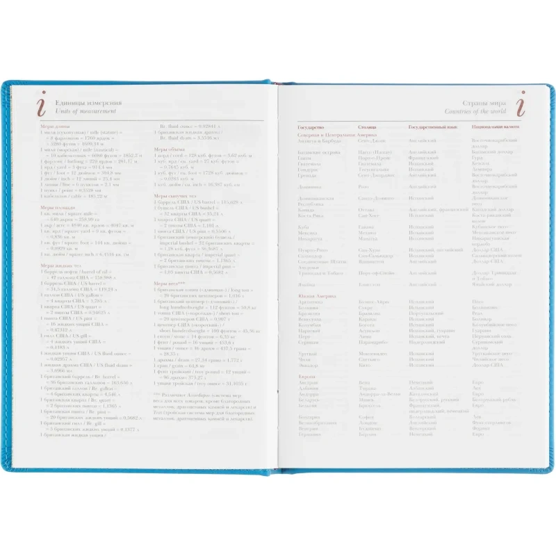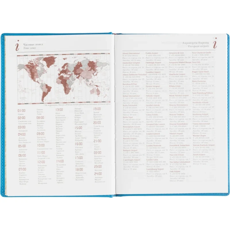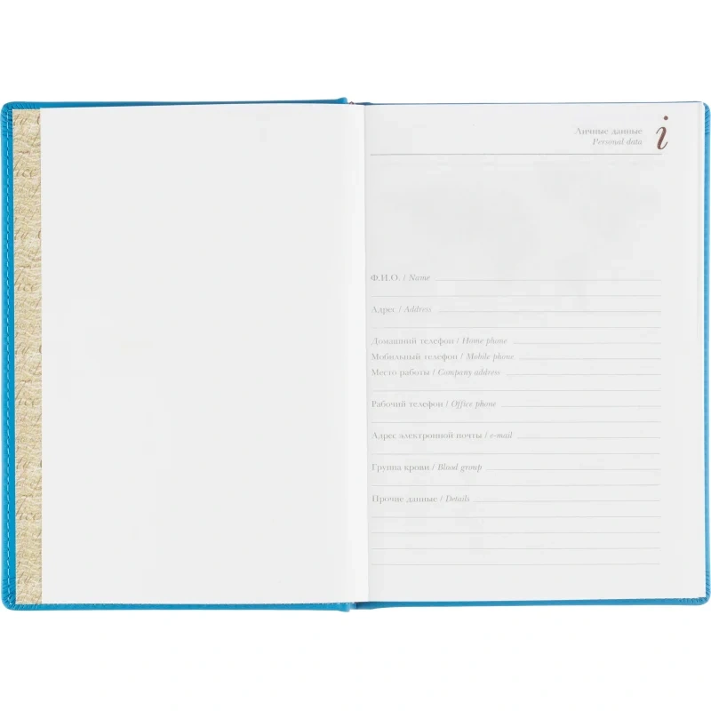 Ежедневник имеет ляссе, что облегчает использование и делает его удобным для быстрого доступа к нужной странице. Тип крепления — сшивка. Внутри содержится информационно-справочный блок с международными кодами городов, цифровыми кодами ГИБДД, телефонами первой необходимости и другими важными данными. Этот ежедневник готов к персонализации, что позволяет нанести логотип или другие элементы по желанию.
