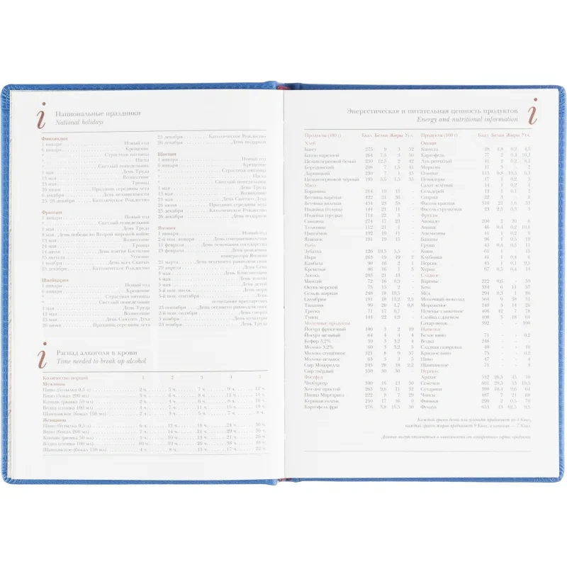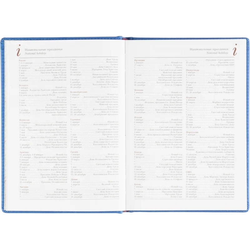 Тип крепления — сшивка, что обеспечит долговечность и надёжность. Внутри содержится информационно-справочный блок с международными кодами городов, цифровыми кодами ГИБДД, телефонами первой необходимости и другими полезными данными. Также присутствует ляссе для удобства. Этот ежедневник готов к персонализации, что позволяет использовать его в качестве корпоративного подарка или аксессуара.