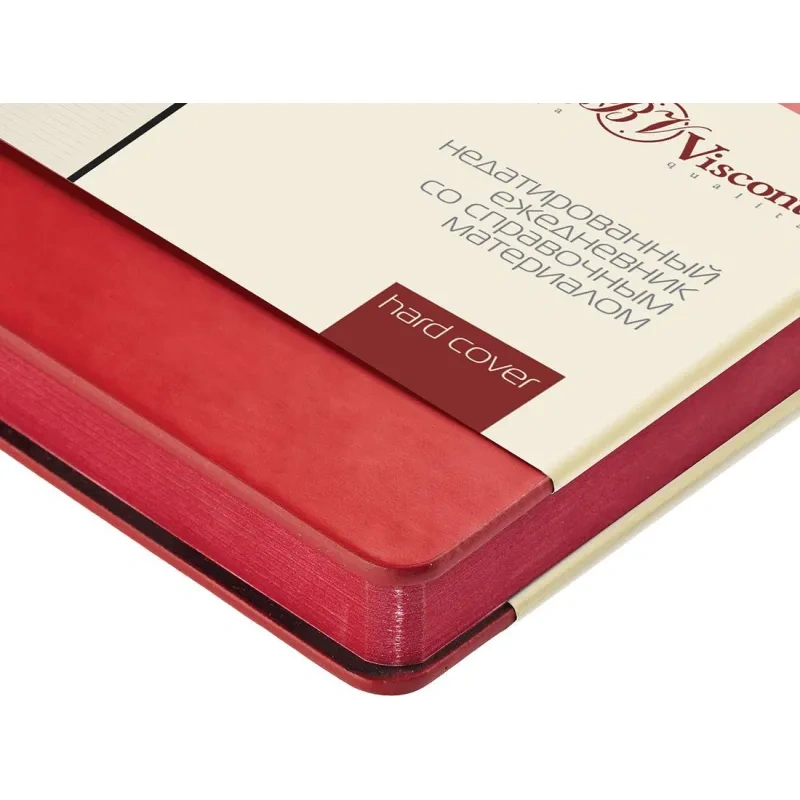 Ежедневник Bruno Visconti Citizen формата A5 (145×205 мм) с твёрдой обложкой красного цвета выполнен из искусственной кожи с красным обрезом. Блок состоит из 160 листов (320 страниц) высококачественной белой офсетной бумаги плотностью 90 г/кв.м. с линовкой в линейку и печатью в два цвета.