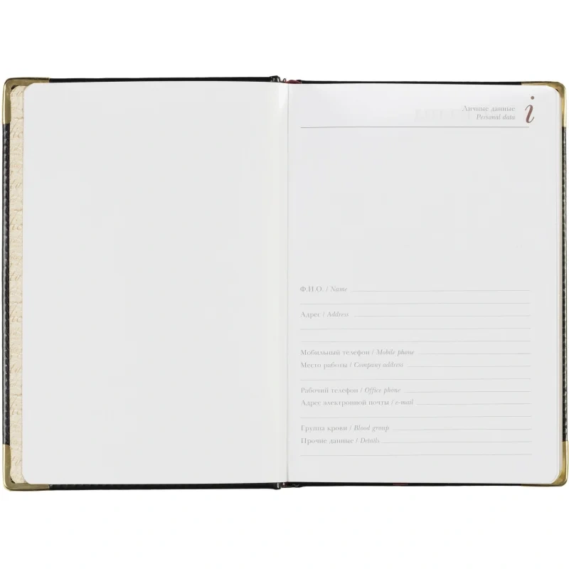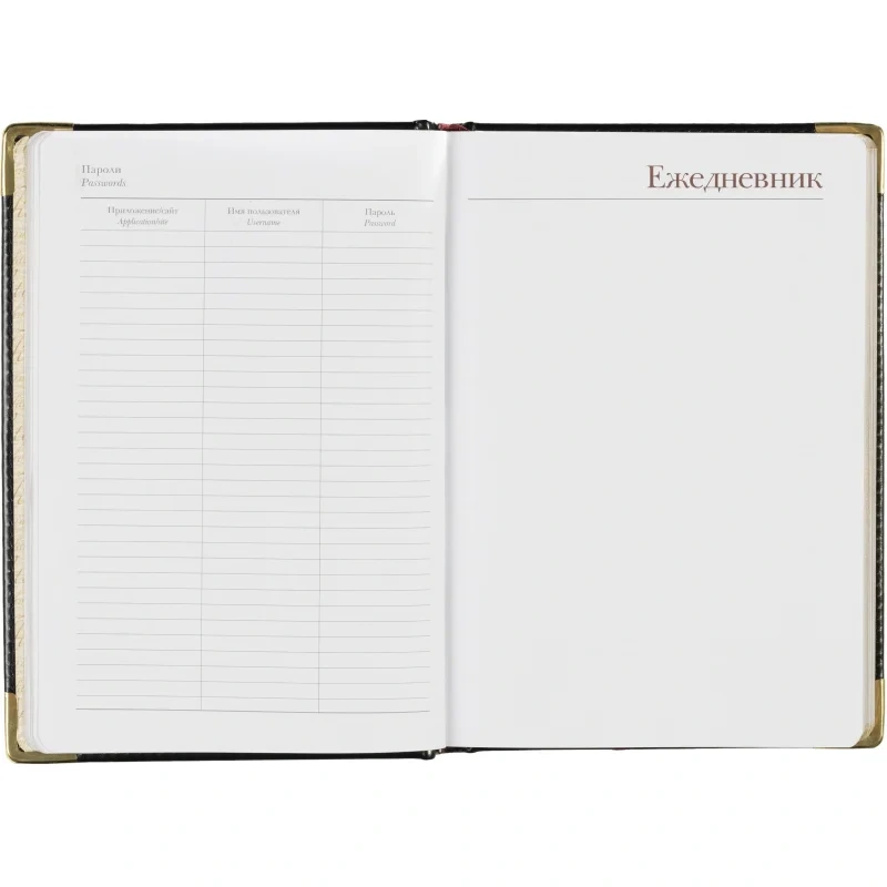 Ежедневник также оснащён закладкой-ляссе для удобства навигации. Он идеально подходит для работы в офисе и может быть персонализирован, что делает его отличным выбором для корпоративных подарков. Упакован без подарочной упаковки.