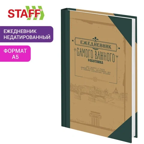 Ежедневник недатированный А5 145х215 мм, ламинированная обложка, 160 л., STAFF, 'Под книгу', 115563