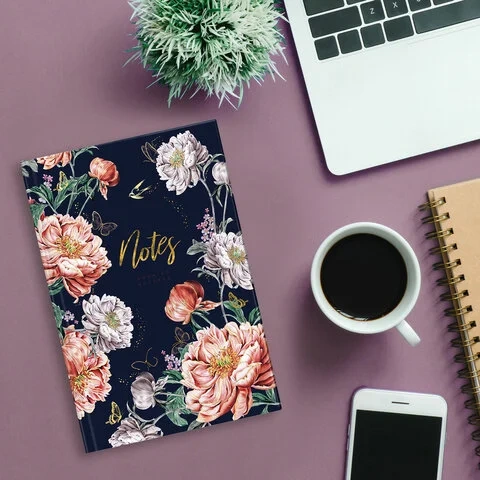 Ежедневник недатированный А5 (145х215 мм), ламинированная обложка с фольгой, 128 л., STAFF, 'Flowers