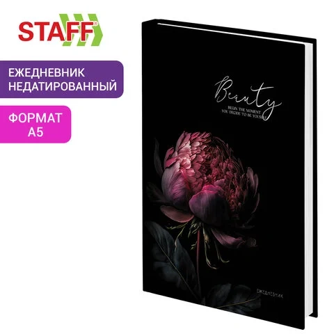 Ежедневник недатированный А5 145х215 мм, ламинированная обложка с фольгой, 160 л., STAFF, 'Пион', 11