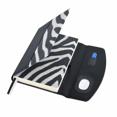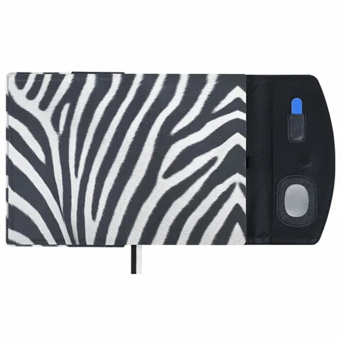 Ежедневник недатированный А5 155х213 мм BRAUBERG 'Wild', под кожу, магнит, 160 л., ZEBRA, черный, 11