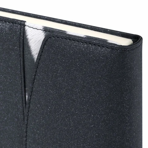 Твердая обложка с блестками подходит для горячего тиснени. Также обложка фиксируется магнитным клапаном, поэтому ежедневник не откроется в сумке или портфеле и страницы не помнутся. Анималистичный принт придает изделию особый шарм. Дополнением служат 2 закладки-ляссе, с помощью которых можно быстро найти нужную страницу. Кроме того, ежедневник снабжен обширным справочным материалом. В конце имеются 7 страниц для записей и заметок. Этот ежедневник порадует наличием держателя для ручки, небольшого зеркальца и пилки для ногтей.