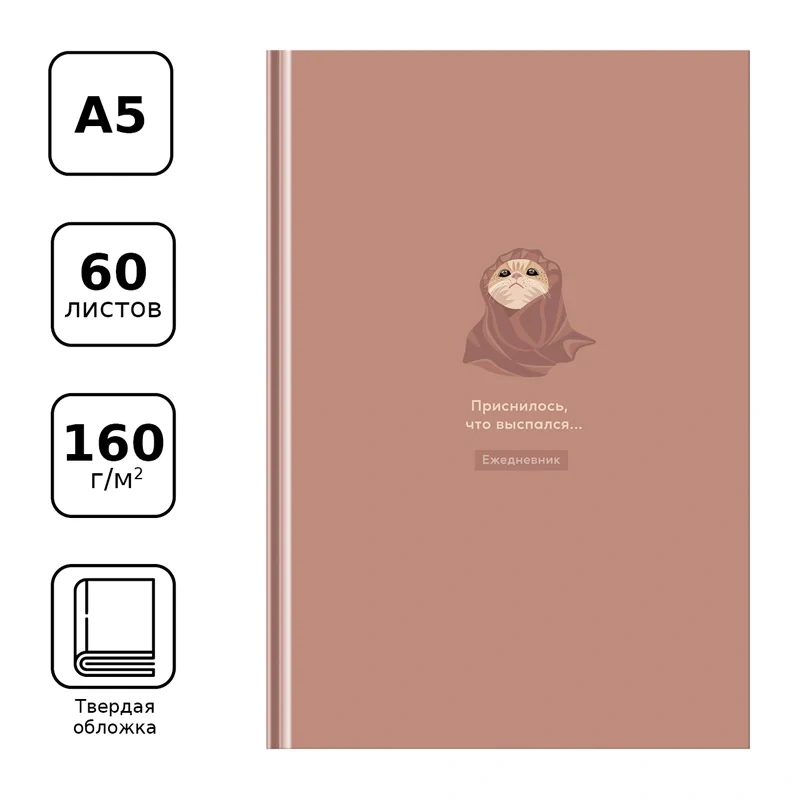 Ежедневник недатированный А5, 160л., 7БЦ, BG 'Приснилось, что выспался', матовая ламинация