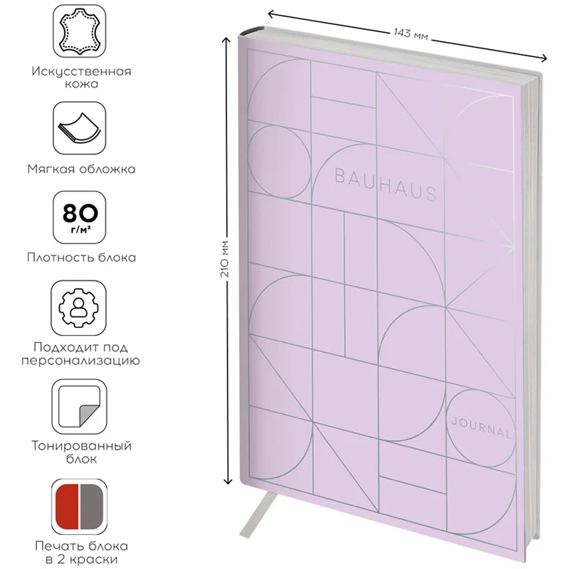 Внутренний блок состоит из 160 листов тонированной офсетной бумаги плотностью 80 г/кв.м с разметкой в линейку и печатью в две краски. В блоке предусмотрен информационно-справочный раздел с праздниками России, международными телефонными кодами городов, цифровыми кодами ГИБДД, справочником неметрических единиц с переводом в метрические и таблицей размеров одежды. Также имеется алфавитный блок без вырубки. Внутри расположен календарь на 2024–2027 годы. Листы крепятся методом сшивки.
