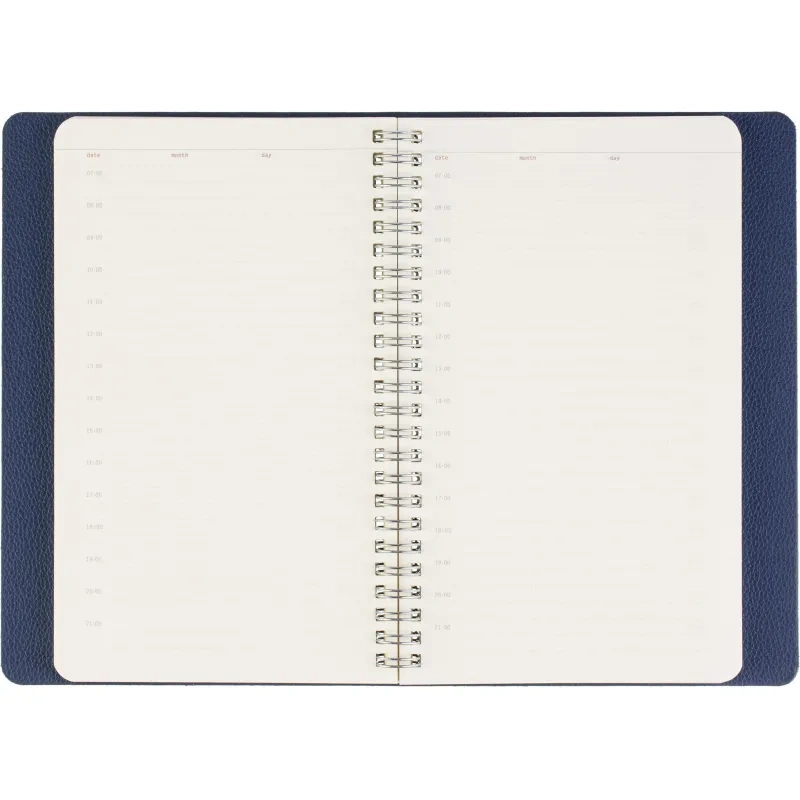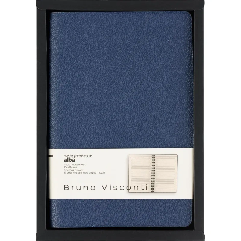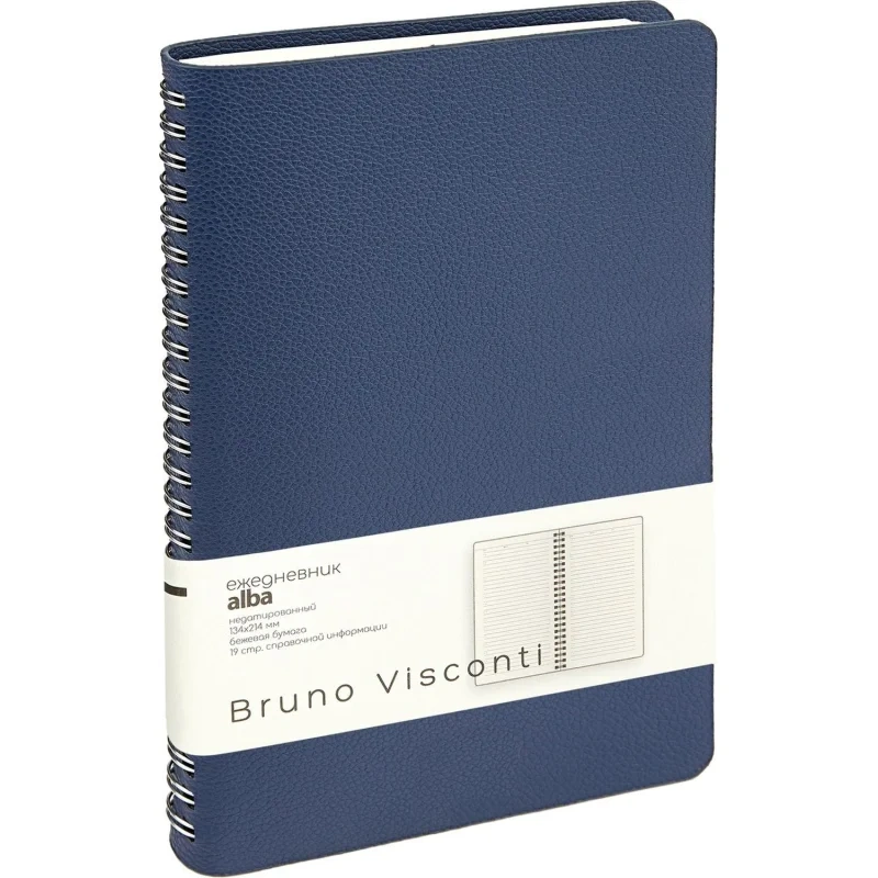 Ежедневник недатированный Bruno Visconti Alba формата А5 сочетает гибкую мягкую обложку и полускрытый гребень, позволяющий раскрывать блок на 360 градусов. Обложка выполнена из синей искусственной кожи с аккуратной прострочкой по периметру.