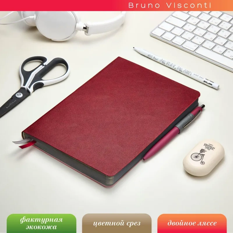 Ежедневник недатированный Bruno Visconti Boston искусственная кожа А5 136 листов бордовый (серый обрез)
