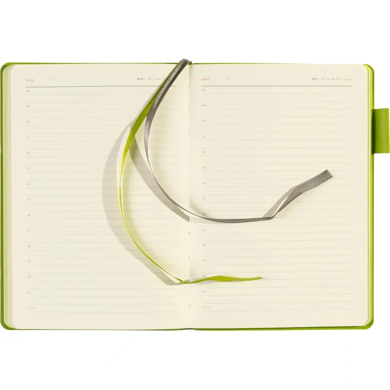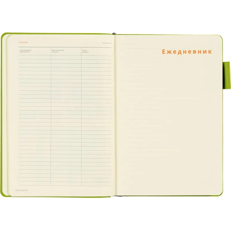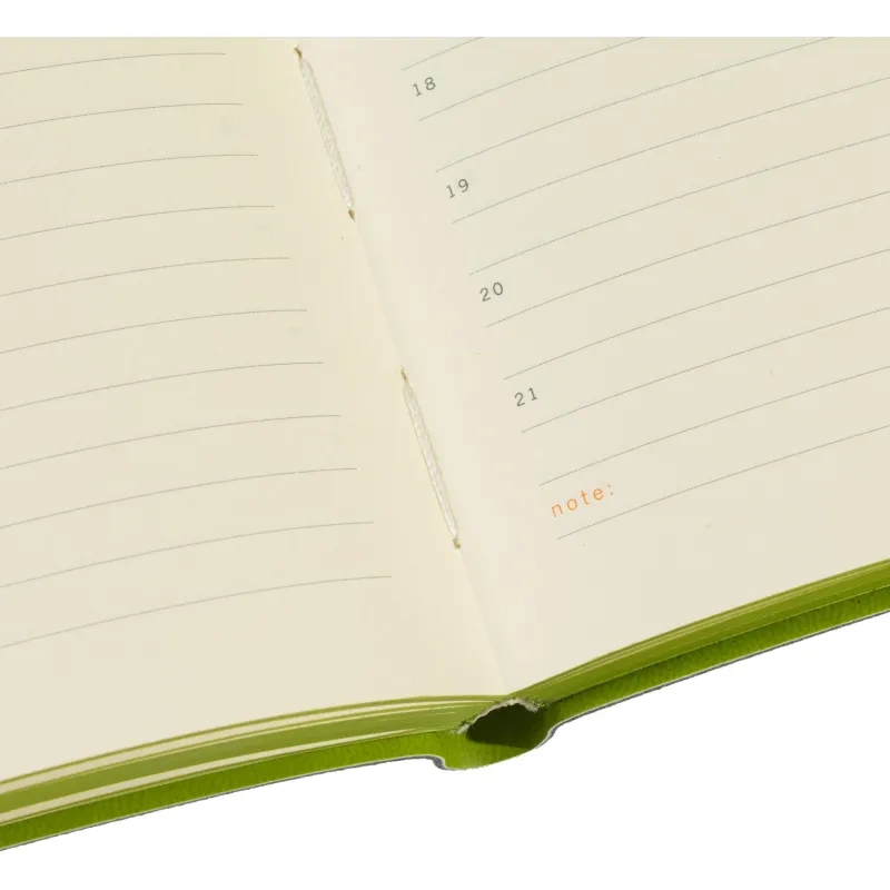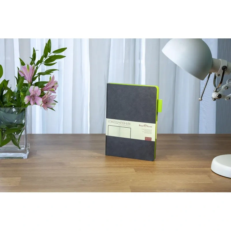 Ежедневник также дополнен ляссе для удобства навигации по страницам и предназначен для персонализации. Он не имеет кармана, календаря или фиксирующей резинки, что подчёркивает его минималистичный дизайн. Упакован в картонный полукороб и термопленку для сохранности.