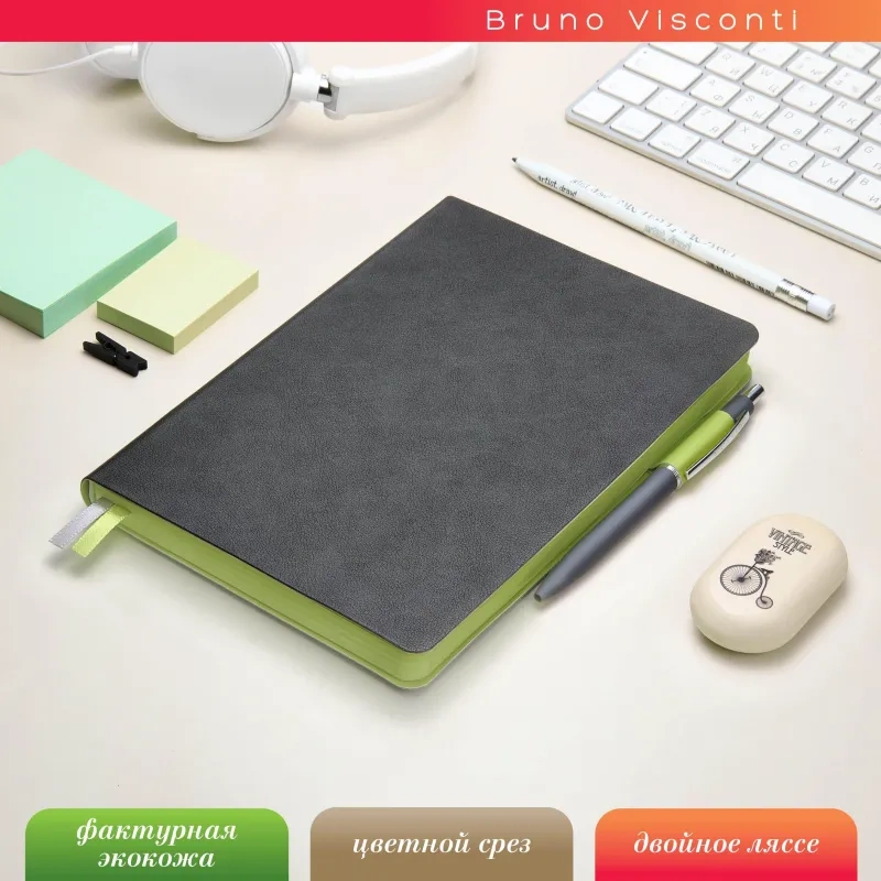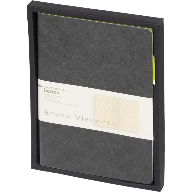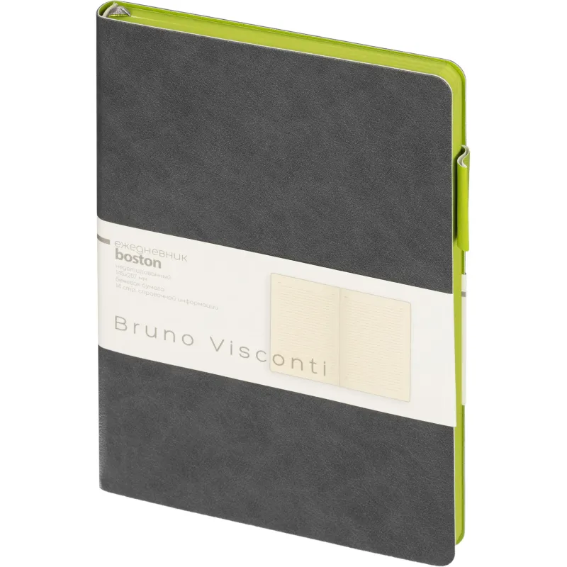 Ежедневник недатированный Bruno Visconti Boston искусственная кожа А5 136 листов серый (зелёный обрез)
