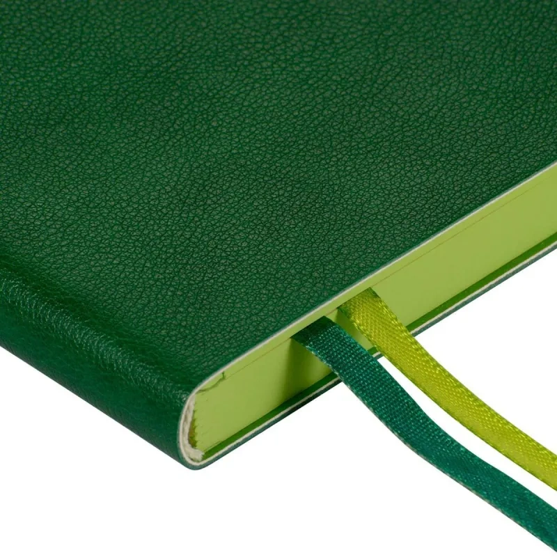 Ежедневник Boston выполнен в элегантном зелёном цвете с мягкой обложкой из искусственной кожи. Его дизайн подчёркивает роскошь и сдержанность, а текстурированная обложка придаёт изделию благородство. Двойное ляссе, играющее важную роль в оформлении, гармонично сочетается с цветным зелёным обрезом, добавляя стильности. Красивая бежевая бумага плотностью 90 г/кв.м. с тонированным оттенком придаёт ежедневнику утончённость, а скруглённые углы обложки и блока защищают от повреждений.