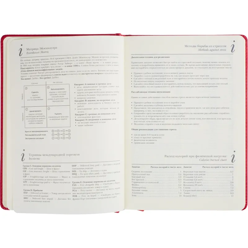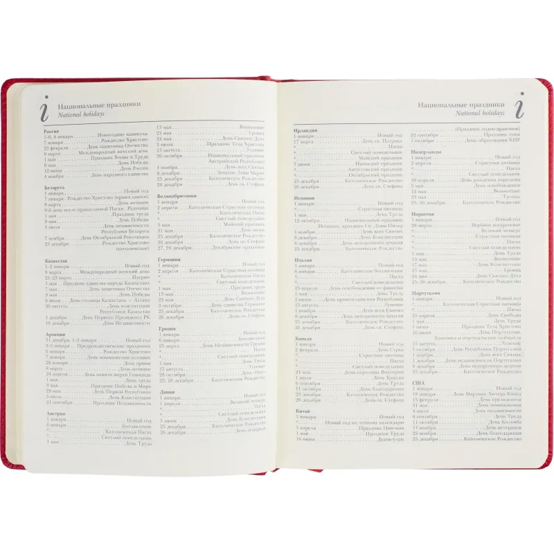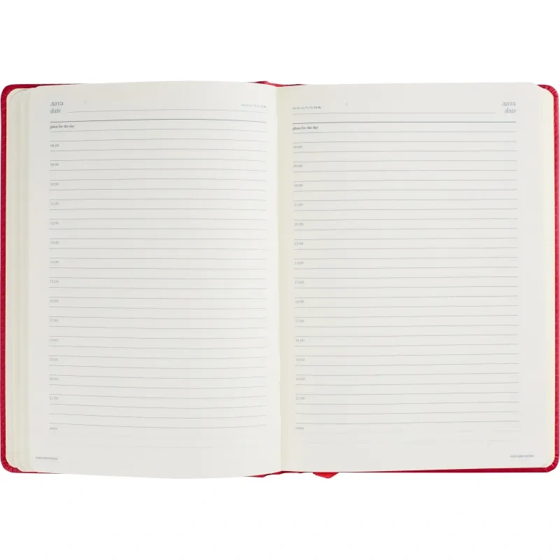 Ежедневник в формате А5+ с твёрдой обложкой из искусственной кожи идеально подходит для планирования рабочего времени. Внешняя поверхность обложки выполнена из высококачественной фактурной экокожи, которая придаёт изделию стильный и современный вид. Мягкость обложки обеспечивается поролоном. Красный цвет обложки в офисном стиле с декоративной прострочкой по периметру и скруглёнными углами придаёт ежедневнику элегантность и стильность.