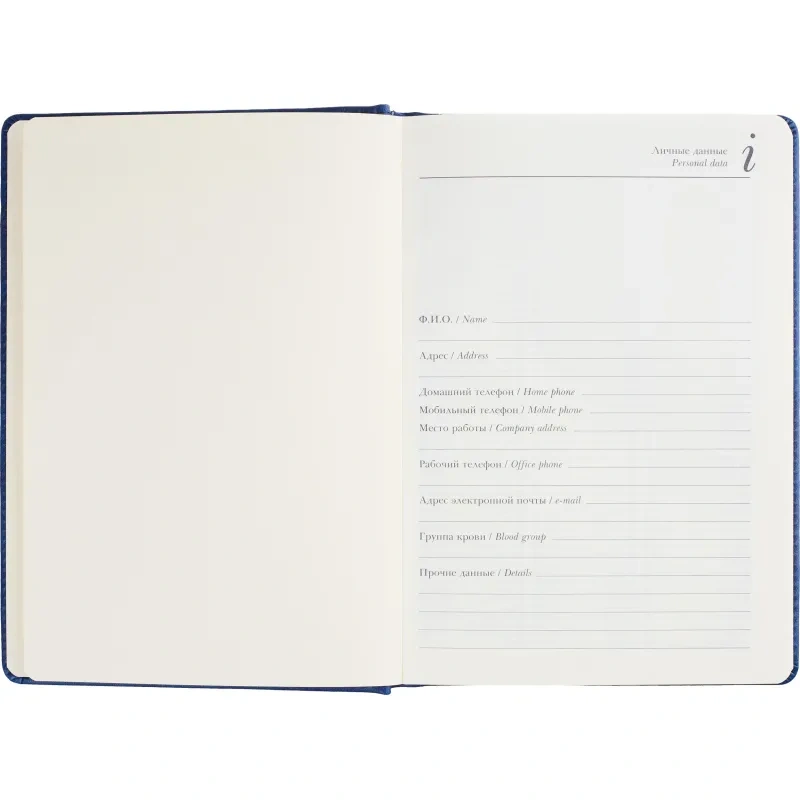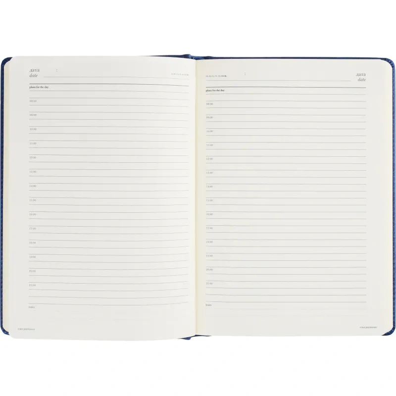 Внутренний блок состоит из 128 страниц бежевой бумаги плотностью 70 г/кв.м, с линовкой в линейку для удобных записей. Ляссе в цвет обложки помогает быстро находить нужные страницы. Ежедневник поставляется без подарочной упаковки и подходит для персонализации.