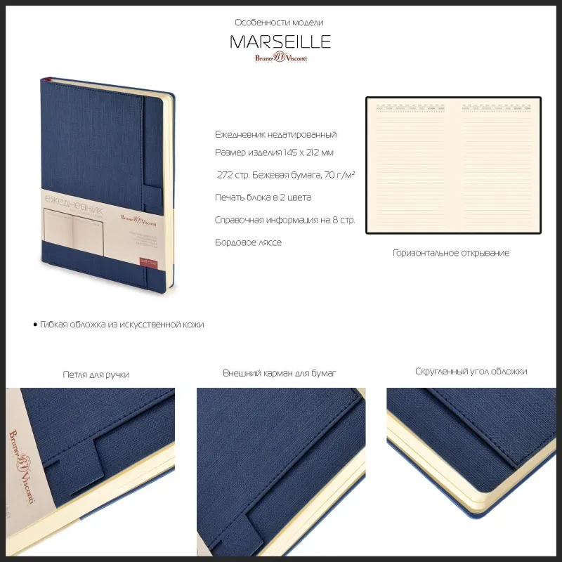 Ежедневник недатированный Bruno Visconti Marseille искусственная кожа А5 136 листов чёрный