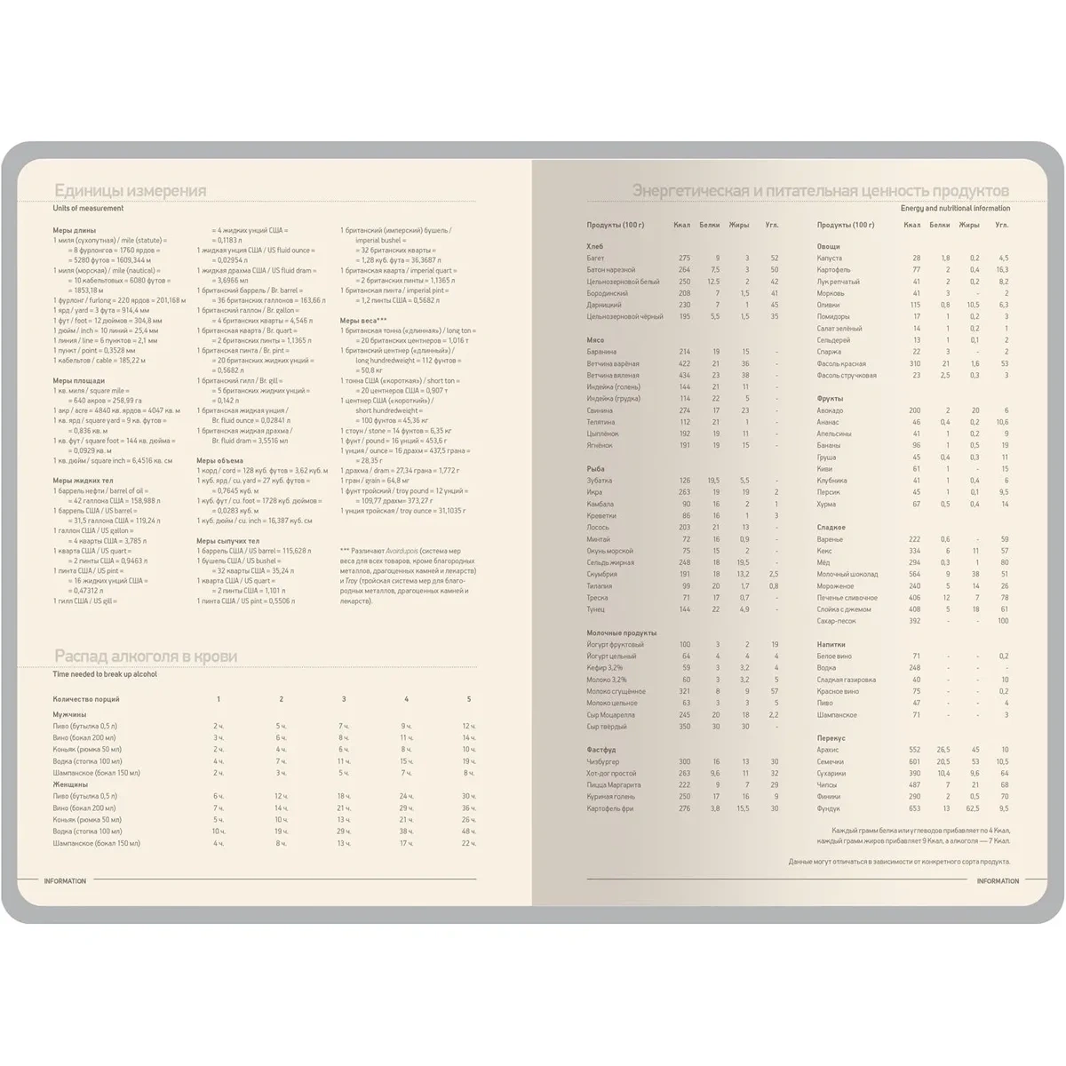 Для удобства навигации предусмотрена закладка-ляссе шириной 7 мм в цвет обложки. В комплект входит справочный блок на 17 страниц, содержащий полезную информацию.
