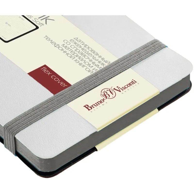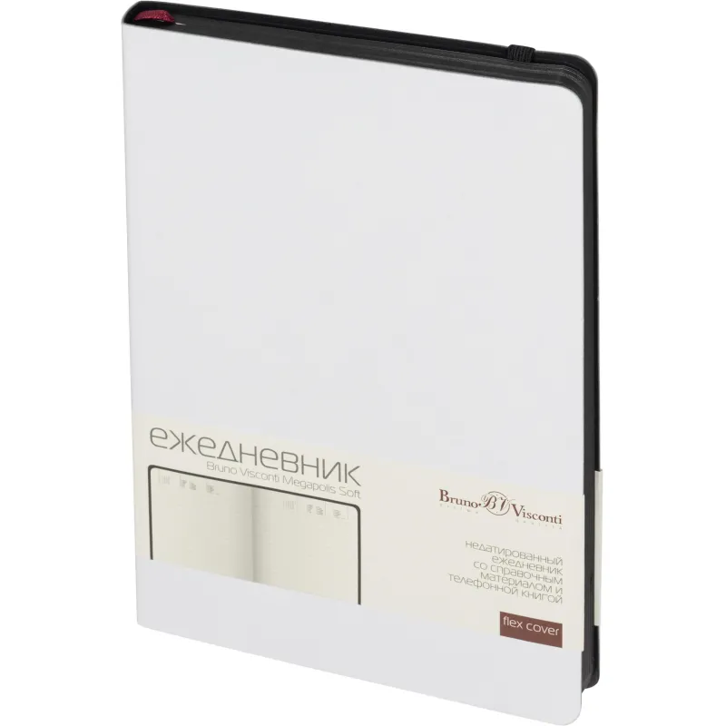 Ежедневник недатированный Bruno Visconti Megapolis Soft искусственная кожа А5 136 листов белый с фиксирующей резинкой (чёрный обрез)