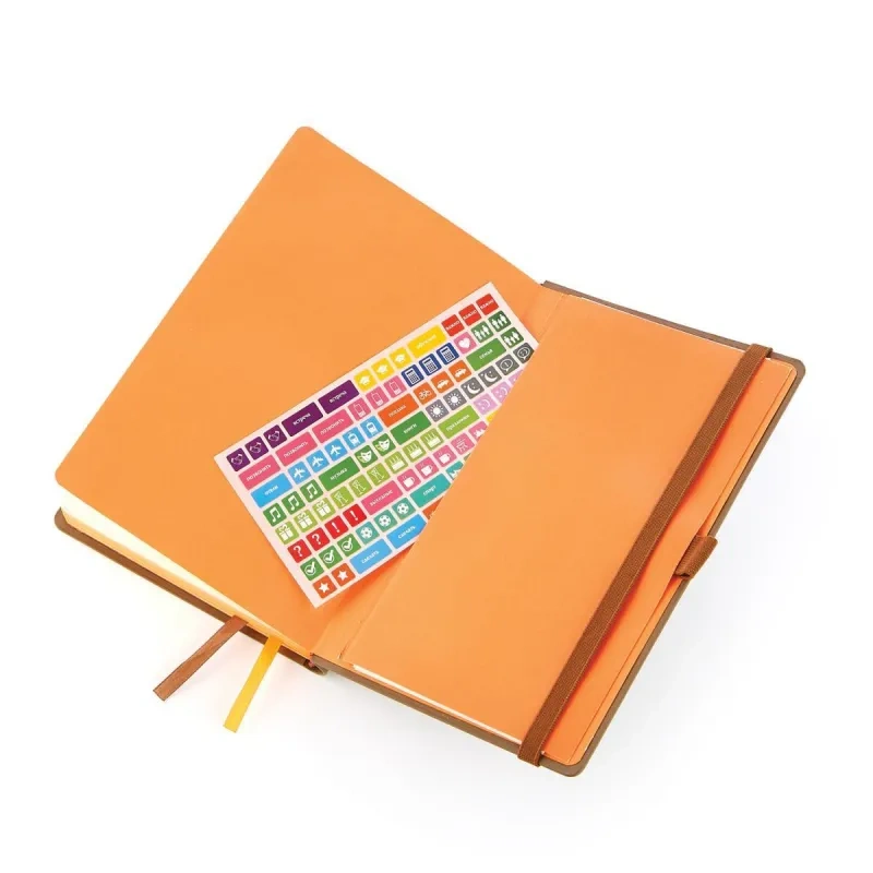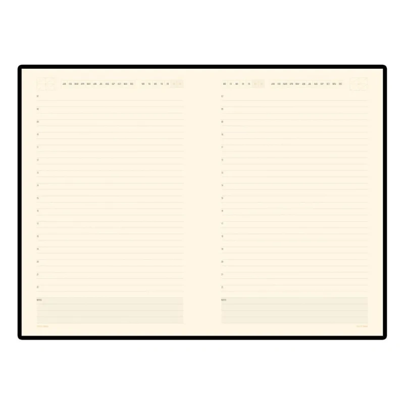 Внутренний блок состоит из 136 страниц высококачественной бежевой офсетной бумаги плотностью 90 г/кв.м., с линейкой. Рядом с графами указано время с интервалом в 1 час. На первых 20 страницах содержатся справочные данные: часовые пояса, телефонные коды, автомобильные коды, размеры одежды, греческие буквы и другие полезные сведения. Также есть страничка для личной информации.