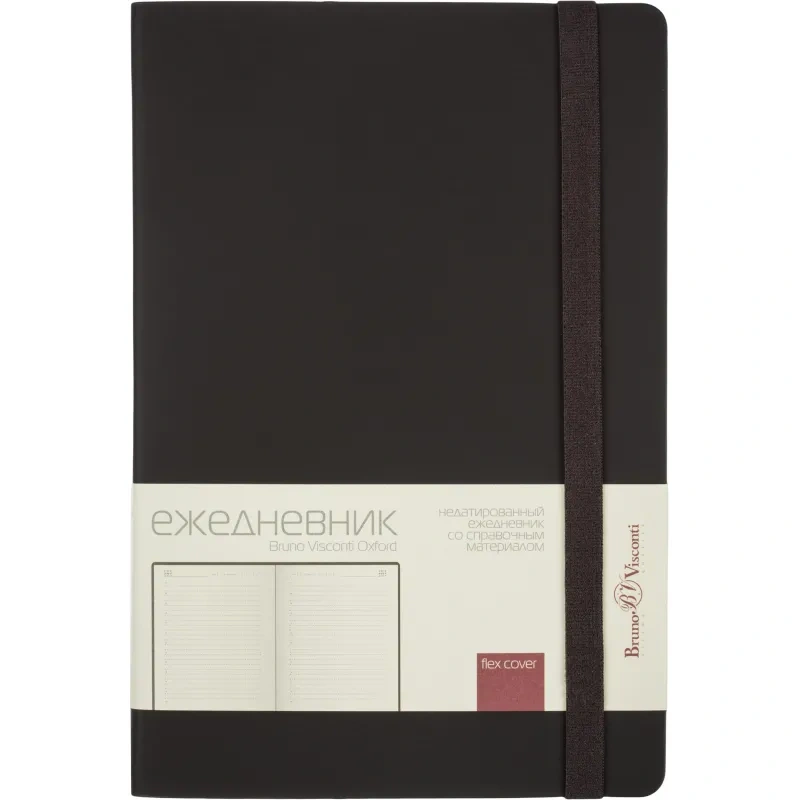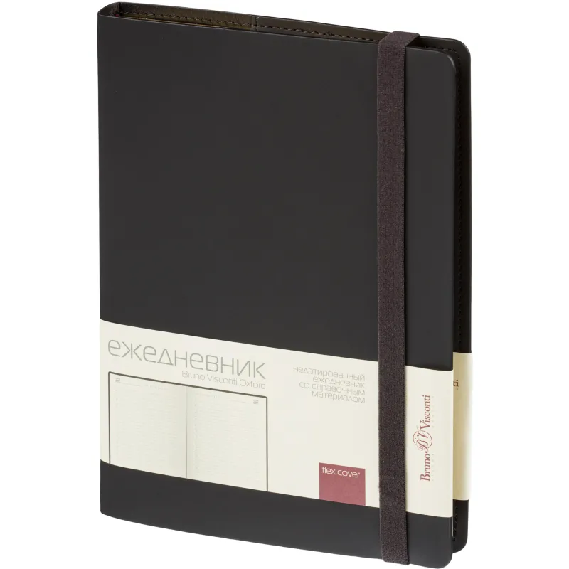 Ежедневник недатированный Bruno Visconti Oxford искусственная кожа Soft Touch А5 136 листов чёрный с фиксирующей резинкой (золотистый обрез)