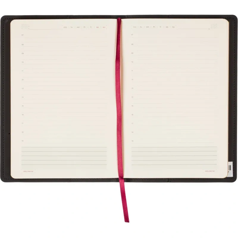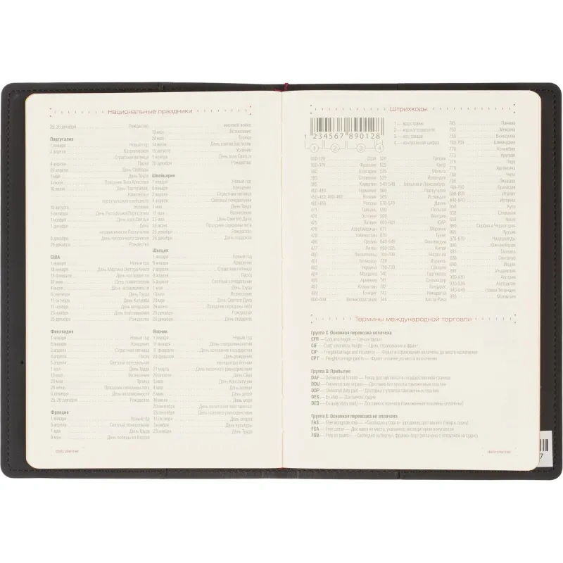 Этот ежедневник дополнен отделом для пластиковых карт и визиток. Тип крепления — сшивка. Также имеется закладка-ляссе для быстрого поиска нужных страниц. Ежедневник готов к персонализации, что делает его отличным выбором для корпоративных нужд.