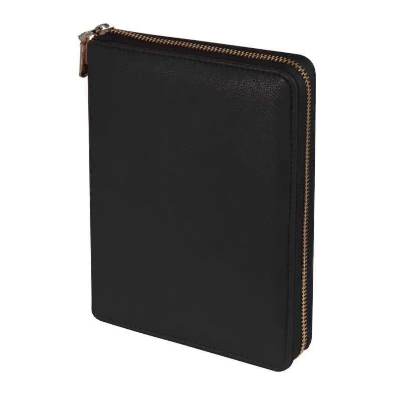 Стильный ежедневник на молнии выполнен из искусственной кожи высокого качества. На внутренней стороне обложки предусмотрены 6 кармашков для карт и петля для ручки, что делает его удобным и практичным аксессуаром для деловых людей. Элегантный чёрный цвет обложки с однотонным дизайном придаёт ежедневнику строгий, но современный вид, подходящий для любого делового контекста.