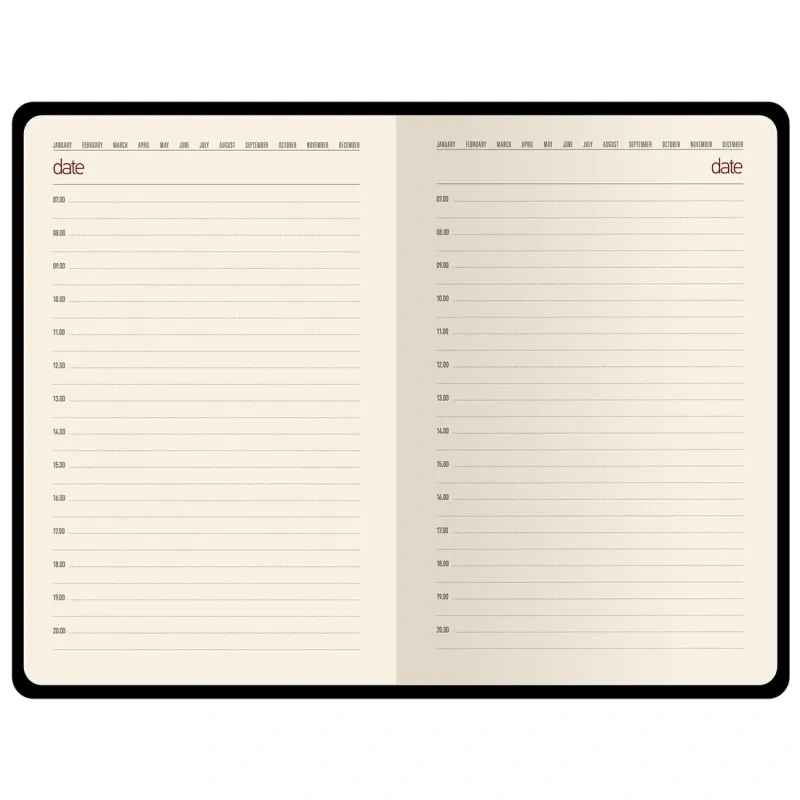 Ежедневник имеет петлю под ручку. Тип крепления — склейка, что позволяет менять блоки. Внутри содержится информационно-справочный блок с международными кодами городов, цифровыми кодами ГИБДД, телефонами первой необходимости и другими полезными данными. Этот ежедневник готов к персонализации, что делает его идеальным выбором для корпоративных нужд.