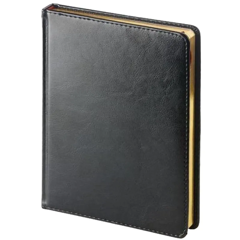 Ежедневник недатированный Attache Sidney Nebraska формата A6, размер изделия 110×155 мм. Обложка чёрного цвета выполнена из искусственной кожи с золотым обрезом.