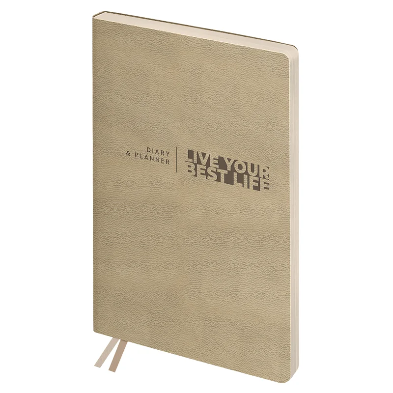 Цветной срез придает ежедневнику особый шарм. Две закладки-ляссе позволят быстро и легко найти нужную страницу, что делает навигацию по ежедневнику удобной и эффективной.
