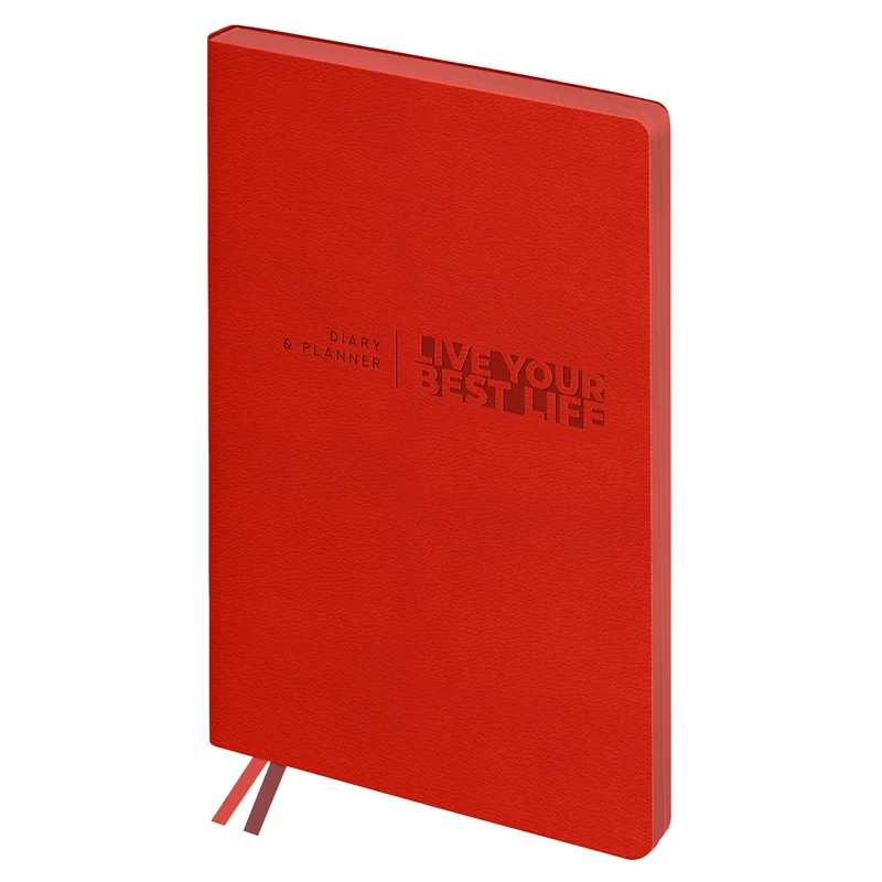 Ежедневник недатированный формата А6+ BG серии Waltz не позволит пропустить важную встречу, а записи всегда будут под рукой. Мягкая обложка из экокожи красного цвета подчеркнёт статус и вкус владельца, а мотивирующая фраза поднимет настроение и придаст уверенности.