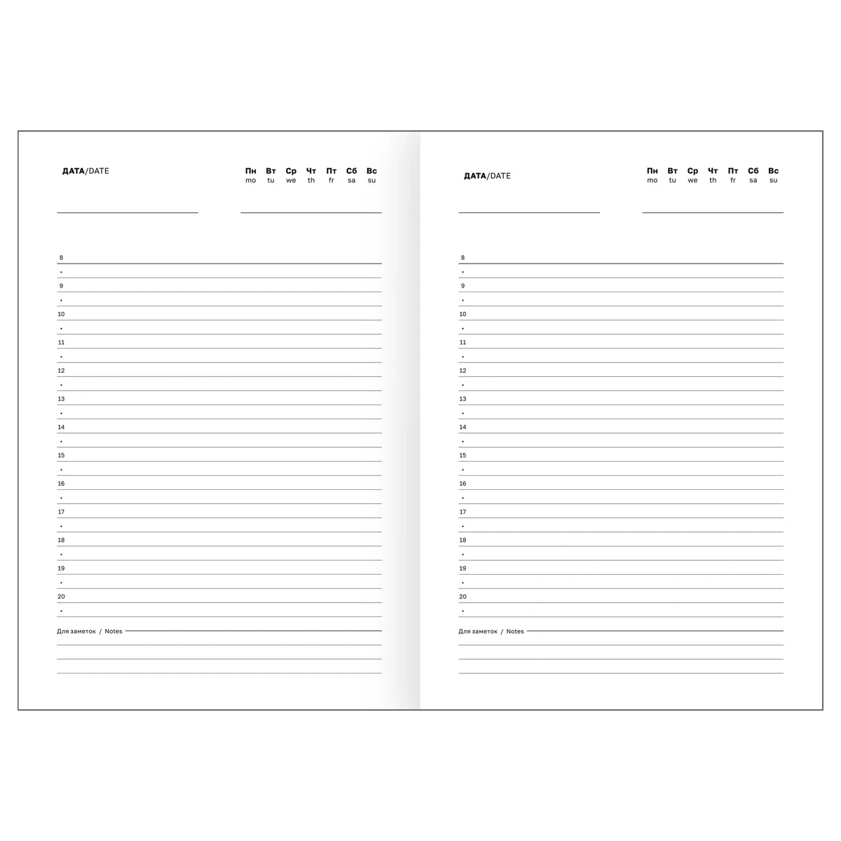 Изделие имеет размер 112*145 мм, что говорит о том, что ежедневник BG поместится даже в небольшой рюкзак или сумочку.