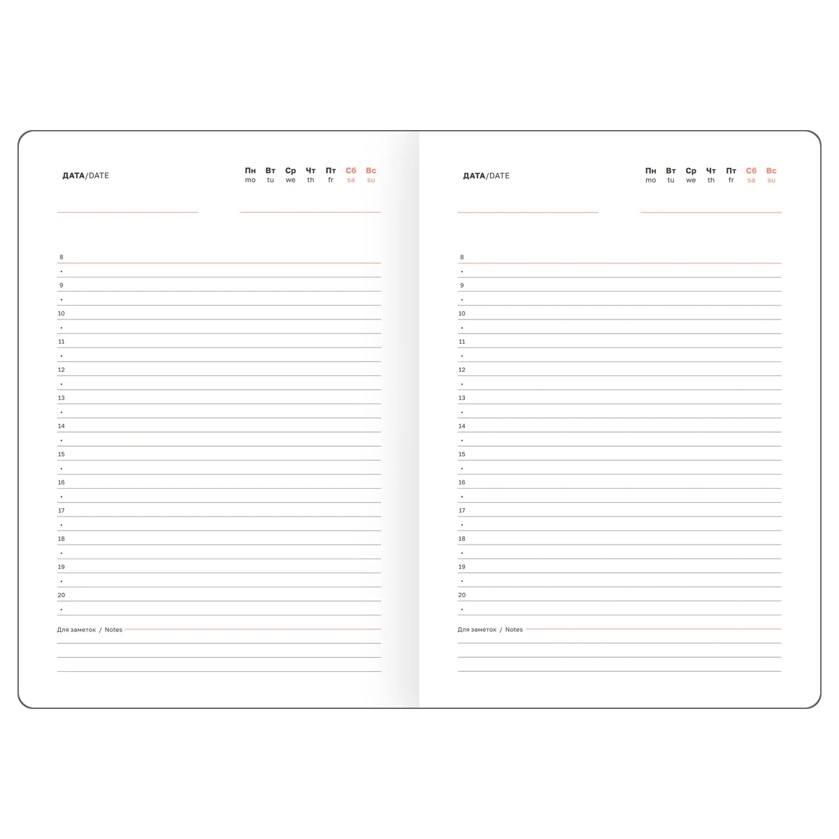 Перфорированные уголки и закладка-ляссе обеспечат комфорт и удобство при использовании. В ежедневнике предусмотрена справочная информация, годовой планер, календарь и другие полезные сведения.
