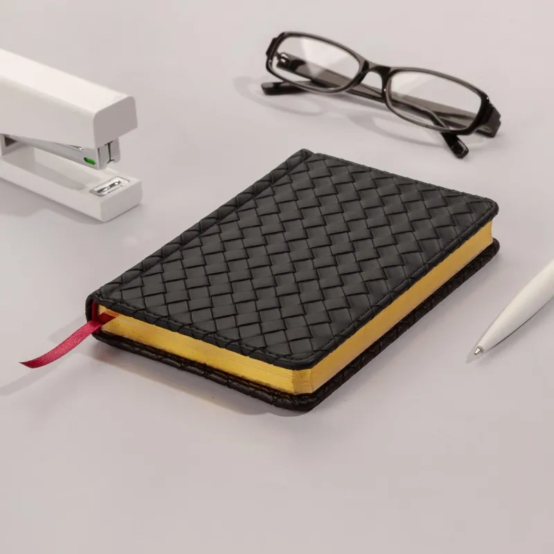 Недатированный ежедневник ’Magnum’ от Bruno Visconti формата A6+ сочетает в себе традиции итальянского стиля, строгий дизайн и функциональность. Обложка выполнена с использованием уникальной технологии плетения ’Intrecciato’, когда тонкие кожаные ленты переплетаются, создавая ромбовый узор. Обложка прошита декоративной нитью в тон, а золотой срез и скруглённые углы подчёркивают статус владельца. Бордовое ляссе добавляет дополнительный акцент и удобство в навигации.