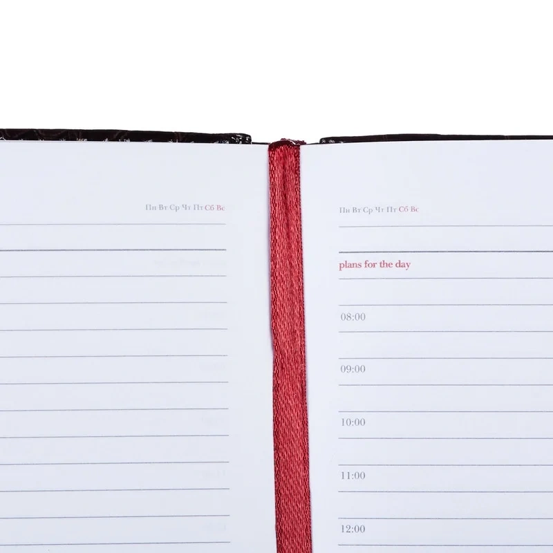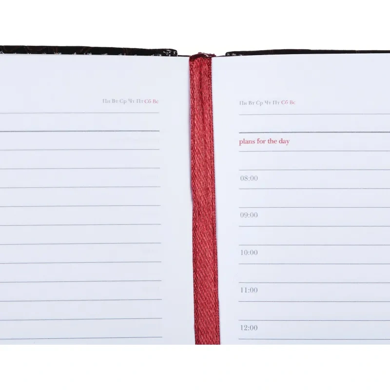Внутренний блок состоит из 136 листов (272 страницы) белой офсетной бумаги плотностью 90 г/кв.м. и размером 145×205 мм. Печать выполнена в два цвета, а страницы имеют линейку для удобства записи. Для удобства быстрого доступа к нужной странице предусмотрена шёлковая закладка.