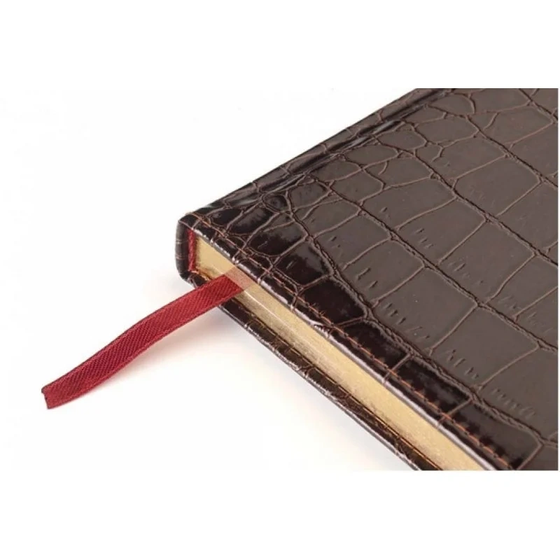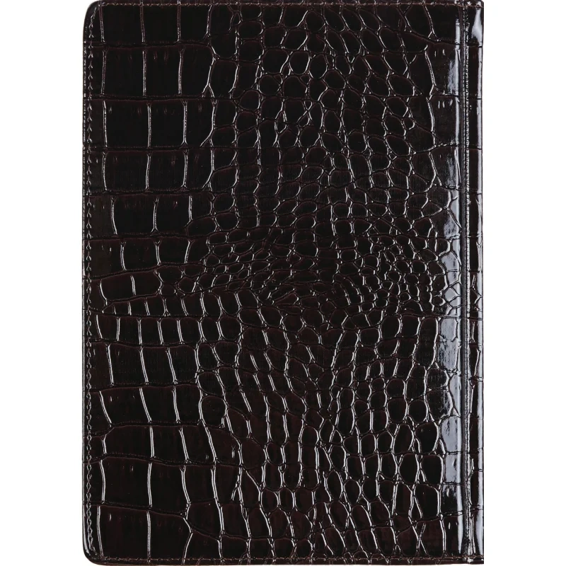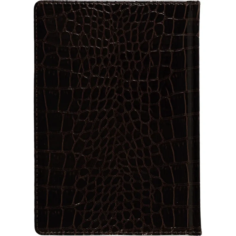Ежедневник недатированный Attache Caiman — искусственная кожа А5 136 листов коричневый (золотистый обрез). Ежедневник с твёрдой обложкой из качественной искусственной кожи коричневого цвета из коллекции Caiman — элегантный и стильный аксессуар для деловых людей. Обложка выполнена в глянцевом исполнении с фактурой под крокодила, что придаёт изделию премиальный вид. Уголки обложки и блока закруглены, а обрез окрашен в золотистый цвет.