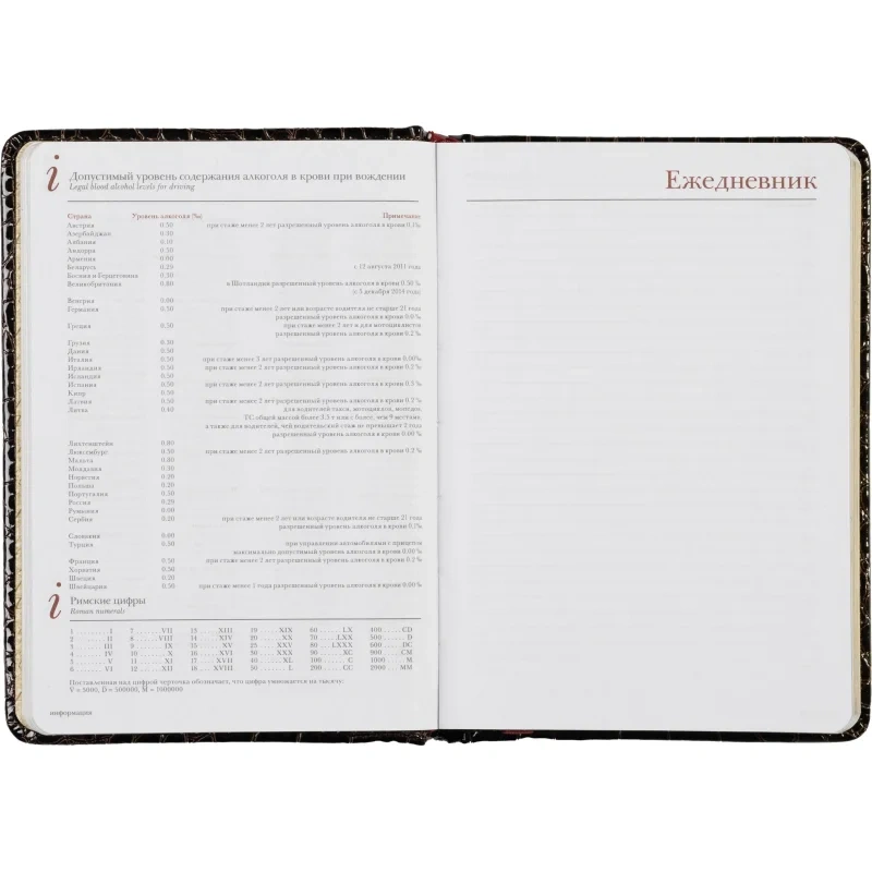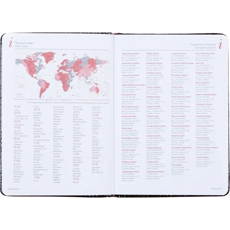 Ежедневник включает полезную справочную информацию на 13 страницах, охватывающую различные аспекты, которые пригодятся в карьере и повседневной жизни. Также предусмотрена телефонная книга на 18 страницах для упорядоченного хранения нужных контактов.