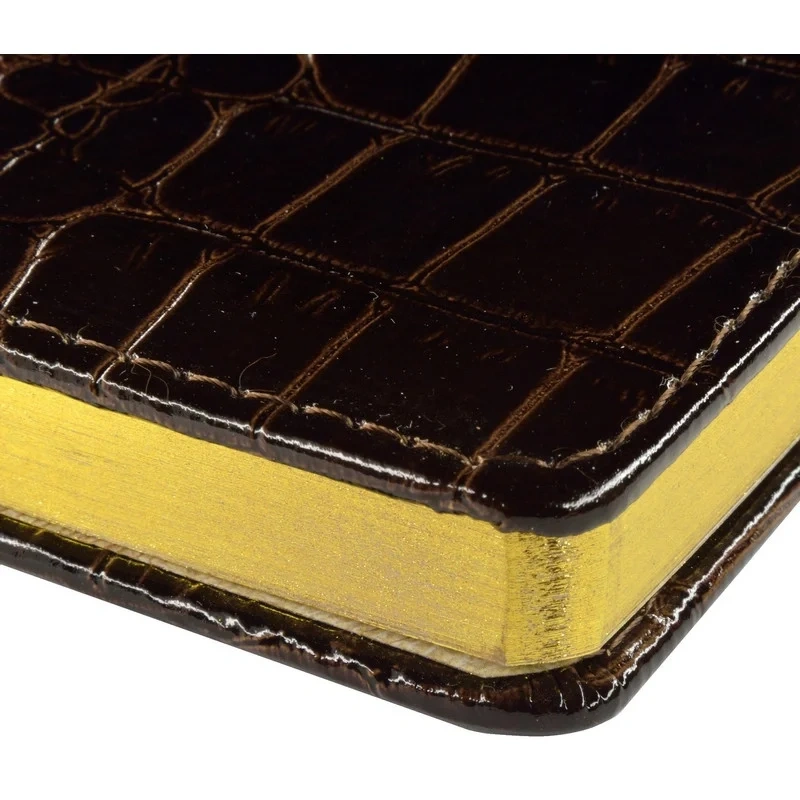 Ежедневник с твёрдой обложкой коричневого цвета из коллекции Caiman — элегантный и функциональный аксессуар для деловых людей. Обложка выполнена из искусственной кожи с тиснением под аллигатора. Матовая поверхность подчёркнута золотым обрезом и декоративной строчкой темно-коричневой нитью по периметру. Ляссе из бордового шёлка добавляет дополнительный стиль и удобство.