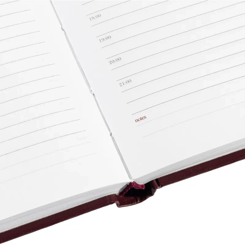 Внутренний блок состоит из 136 листов (272 страницы) белой офсетной бумаги плотностью 90 г/кв.м. и размером 140×200 мм. Печать выполнена в два цвета, а страницы имеют линейку. Для удобства быстрого поиска нужной даты на каждой странице есть место для её написания, а также сокращённые названия дней недели. Встроенная почасовая разбивка страниц и две строки для ежедневного планирования помогают эффективно организовать день. Последние две строки отведены для комментариев.