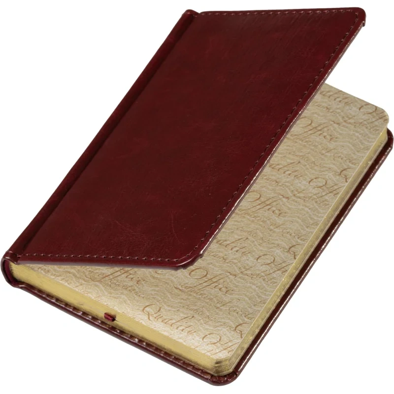 Ежедневник оснащён скруглёнными углами и подходит для персонализации, что делает его отличным выбором для офисной работы. Размер ежедневника — 11×15.5 см, а тип крепления блока — сшивка.