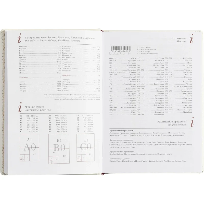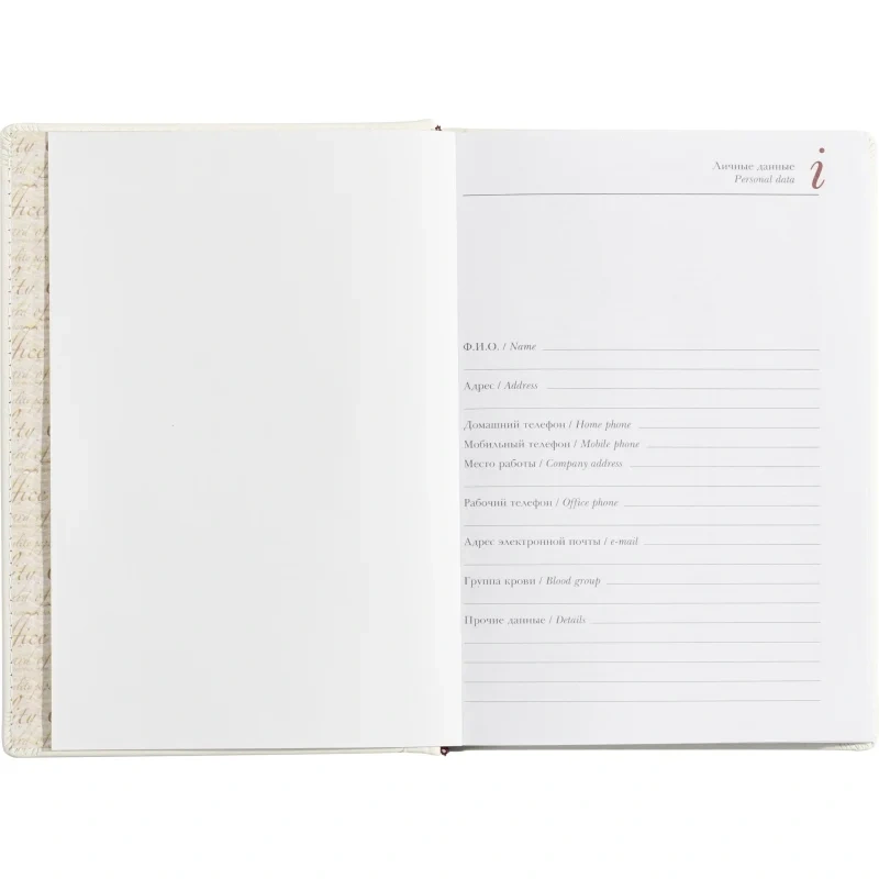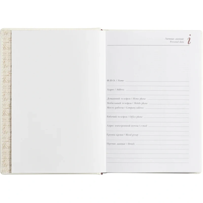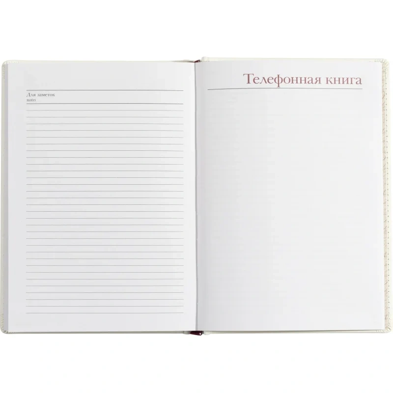 Недатированный, 272 страницы, угол cкругленный, белая высококачественная бумага 70 грамм в линейку, размер 145?205 мм. Печать в 2 цвета.