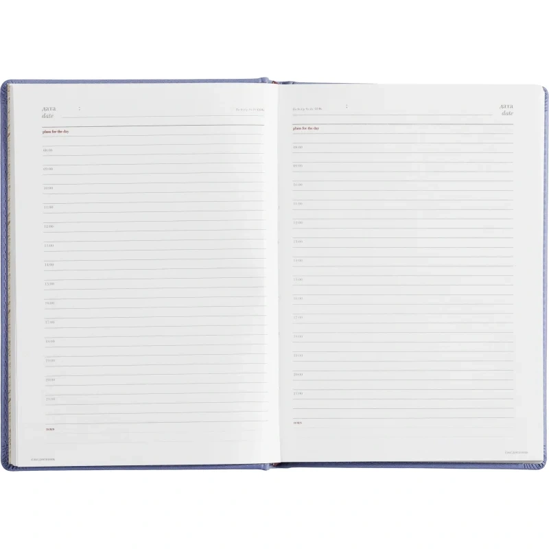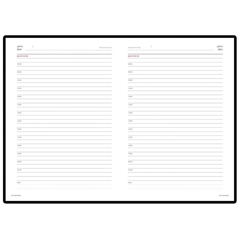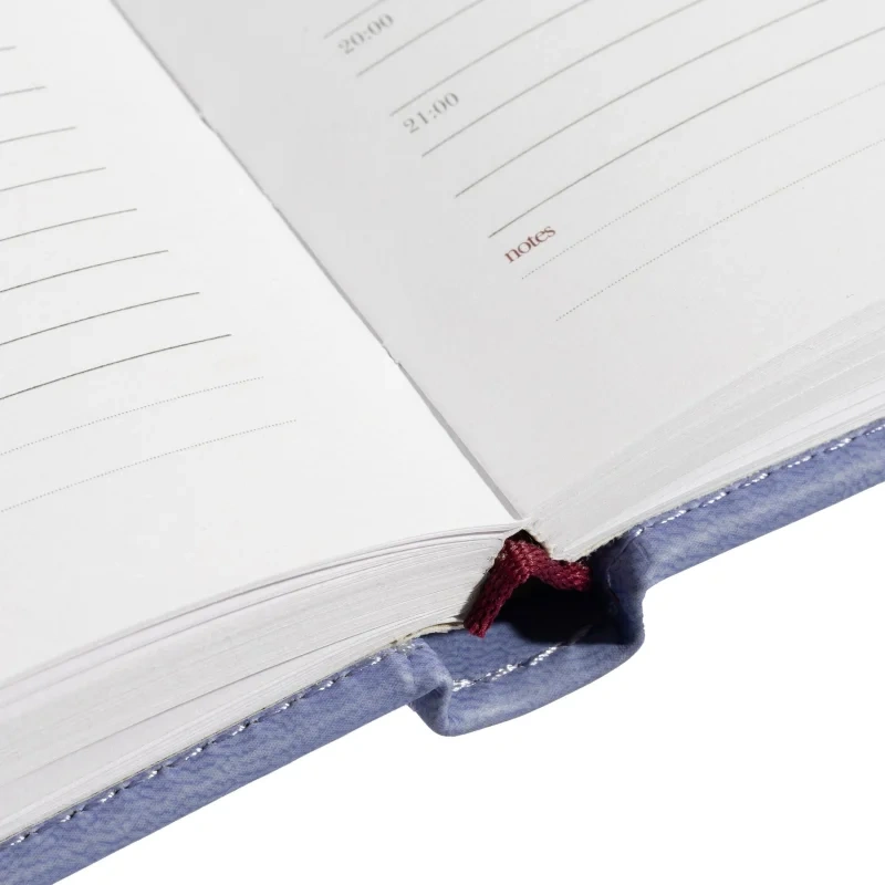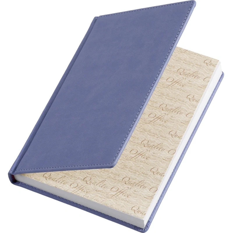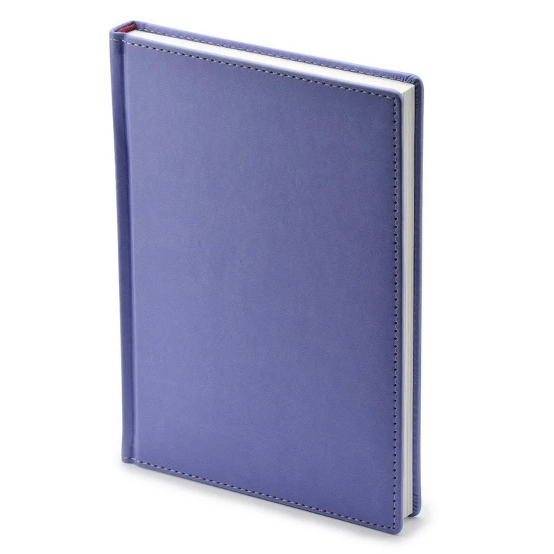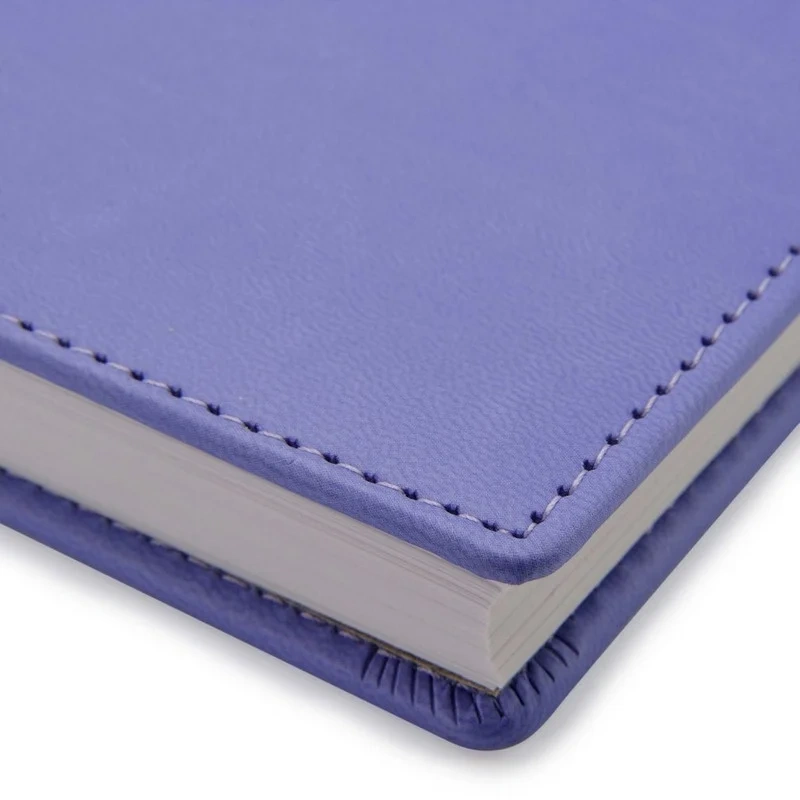 Недатированный ежедневник имеет твердую обложку, выполненную из материала, имитирующего кожу. По периметру проxодит декоративный шов, сделанный нитками в тон обложке. Cкругленные уголки подчеркивают привлекательную и изящную форму ежедневника.