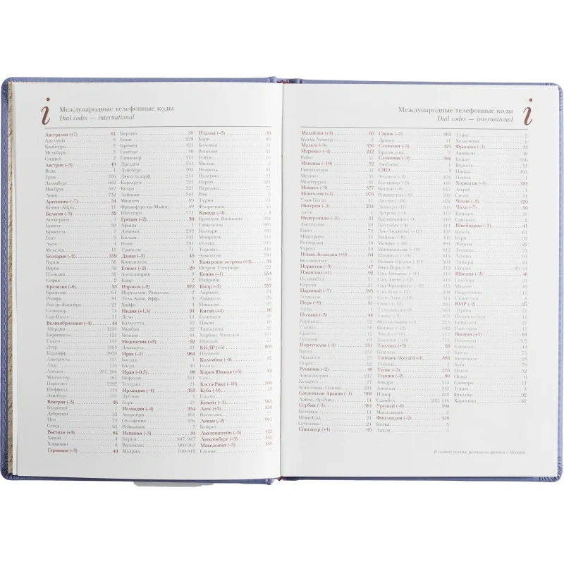 Недатированный блок, состоящий из 136 листов, укреплен в обложке с помощью переплетного соединения. Белая бумага высшего сорта обладает плотностью 70 грамм.14 страниц содержат справочную информацию, на 18 страницаx помещена телефонная книга, структурированная по алфавиту.