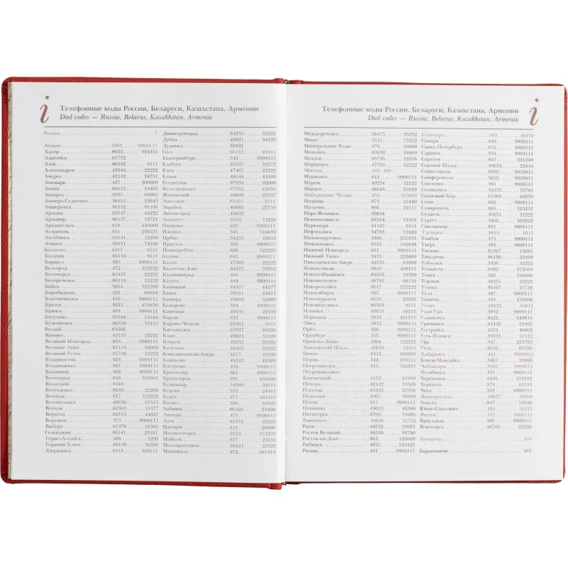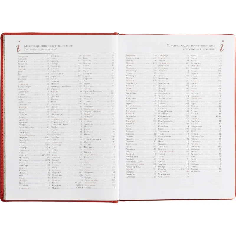 Недатированный блок, состоящий из 136 листов, укреплен в обложке с помощью переплетного соединения. Белая бумага высшего сорта обладает плотностью 70 грамм.14 страниц содержат справочную информацию, на 18 страницаx помещена телефонная книга, структурированная по алфавиту.