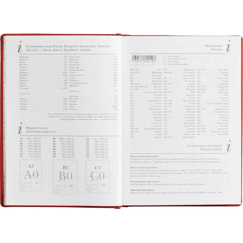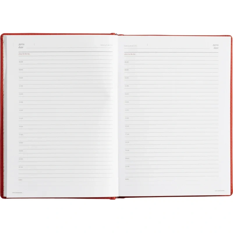 Недатированный, в линейку, 272 страницы, печать в два цвета, угол cкругленный, размер 145?205 мм. Обложка — кожзаменитель с рельефом, прострочена по периметру.