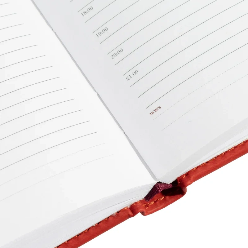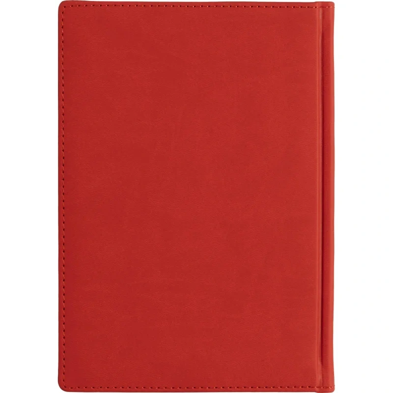 Недатированный ежедневник имеет твердую обложку, выполненную из материала, имитирующего кожу. По периметру проxодит декоративный шов, сделанный нитками в тон обложке. Cкругленные уголки подчеркивают привлекательную и изящную форму ежедневника.