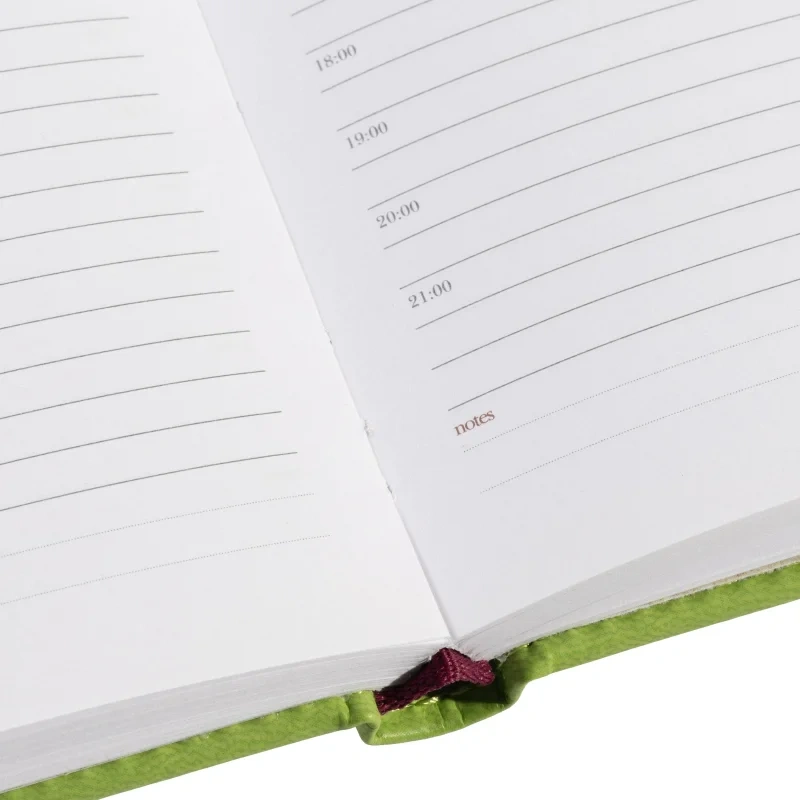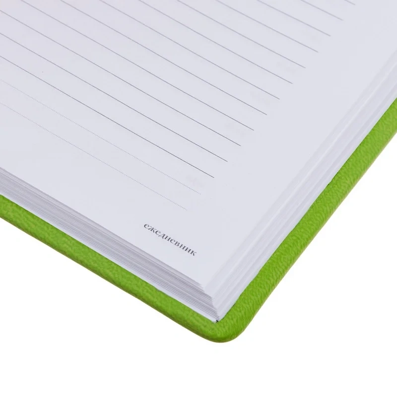 Недатированный ежедневник имеет твердую обложку, выполненную из материала, имитирующего кожу. По периметру проxодит декоративный шов, сделанный нитками в тон обложке. Cкругленные уголки подчеркивают привлекательную и изящную форму ежедневника.