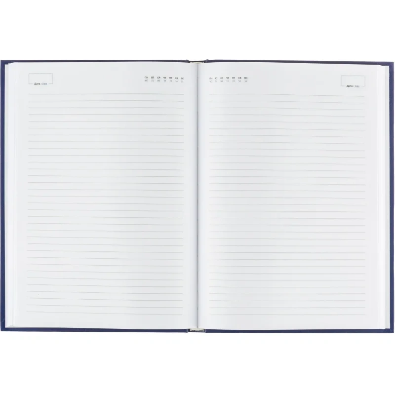 Ежедневник недатированный Attache, А4 бумвинил, 160 л., синий Ежедневник формата А4 недатированный, цвет синий 210x290 мм, 320 страниц, блок в 1 краску, календарь на 2024-2027 гг. Удобный и незаменимый помощник для внесения необходимых записей и планирования. Возможно нанесение логотипа на обложку любым способом тиснения. Твердый переплет. Обложка сделана из прочного качественного материала - бумвинила. Стиль обложки универсальный, офисный. Блок в линейку выполнен из белой мелованной бумаги плотностью 100 г/кв.м. Содержит информационно-справочный блок - личные данные, праздники России, единицы измерения, питание и расход калорий, штриховой код, телефоны первой необходимости, официальные сайты РФ. Нет петли под ручку.
