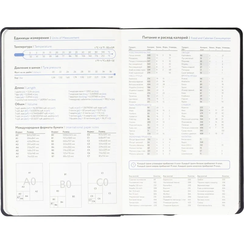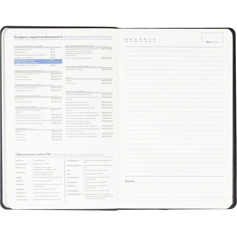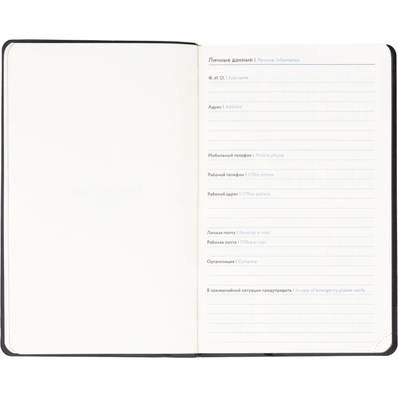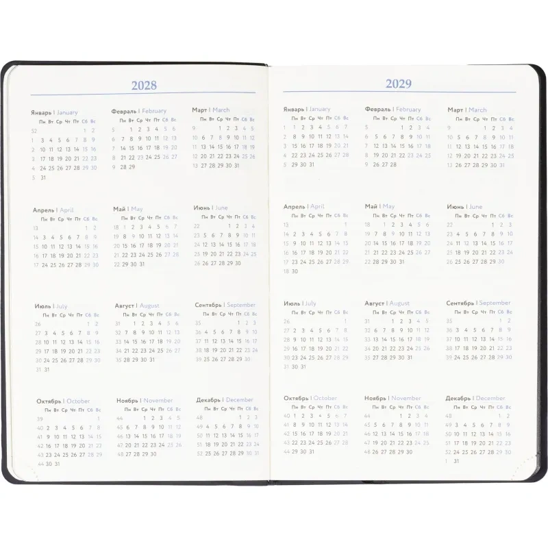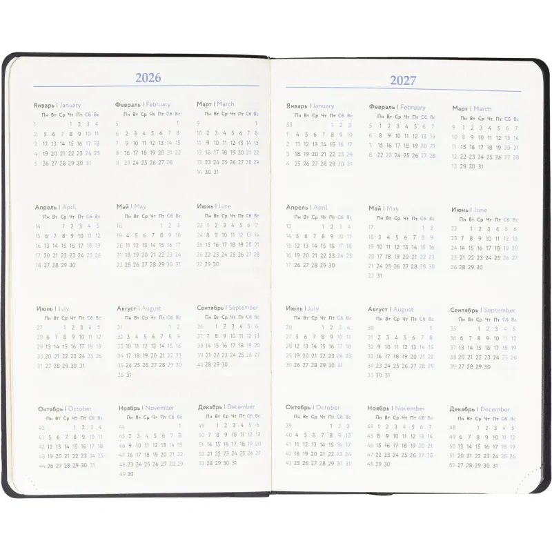Размер ежедневника составляет 13.8×21.3 см. Внутри размещён календарь на два года. Модель подходит под персонализацию.