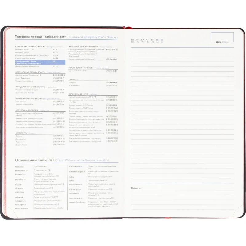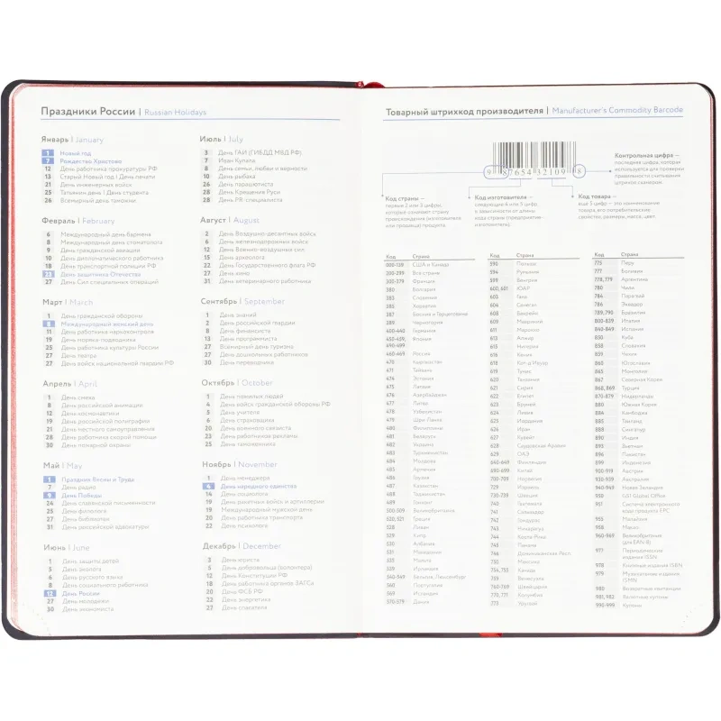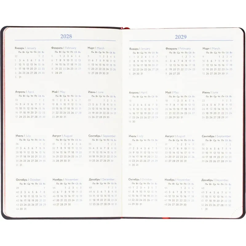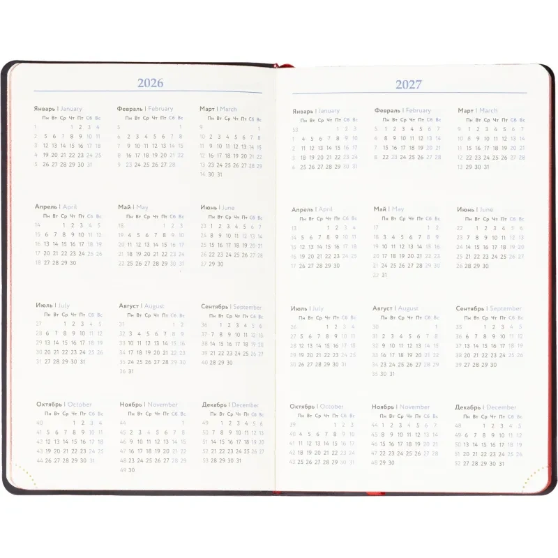 Размер изделия — 13.8×21.3 см. Внутри размещён календарь на два года. Ежедневник подходит под персонализацию.