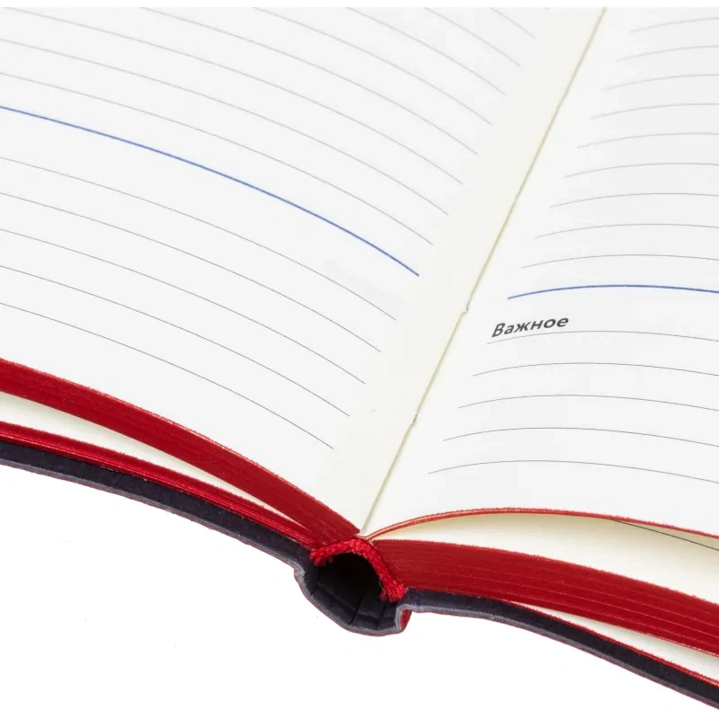 Блок состоит из 160 листов тонированной офсетной бумаги плотностью 80 г/кв.м. Страницы напечатаны в две краски и размечены в линейку. Вырубка блока и перфорация уголков позволяют удобно находить нужные страницы. Скруглённые углы листов повышают комфорт при перелистывании. Красный обрез придаёт изделию яркий и аккуратный внешний вид.